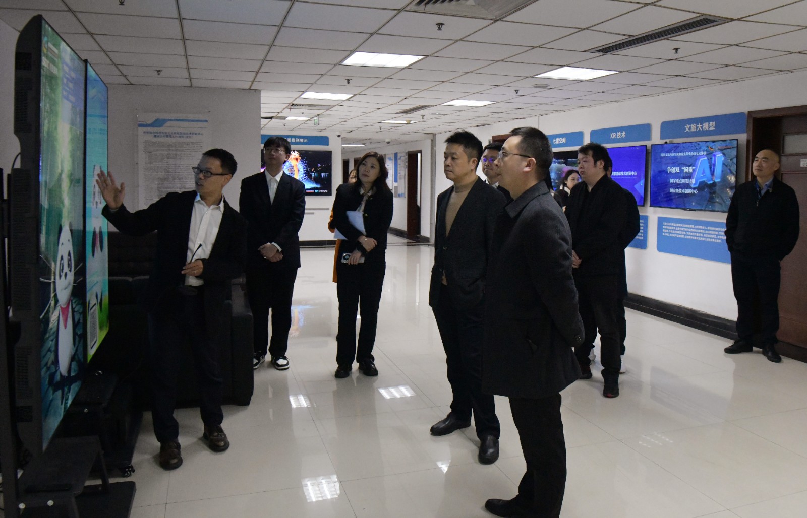 調(diào)研組一行參觀了由虛擬現(xiàn)實(shí)前沿技術(shù)構(gòu)建的大型沉浸式互動(dòng)體驗(yàn)館——“七重空間·大國(guó)重器”,實(shí)地查看視覺融合場(chǎng)景體驗(yàn)文化和旅游部技術(shù)創(chuàng)新中心、川投數(shù)科AI文旅大模型建設(shè)情況,并圍繞“新時(shí)代數(shù)字紀(jì)檢探索”等主題進(jìn)行深入交流。