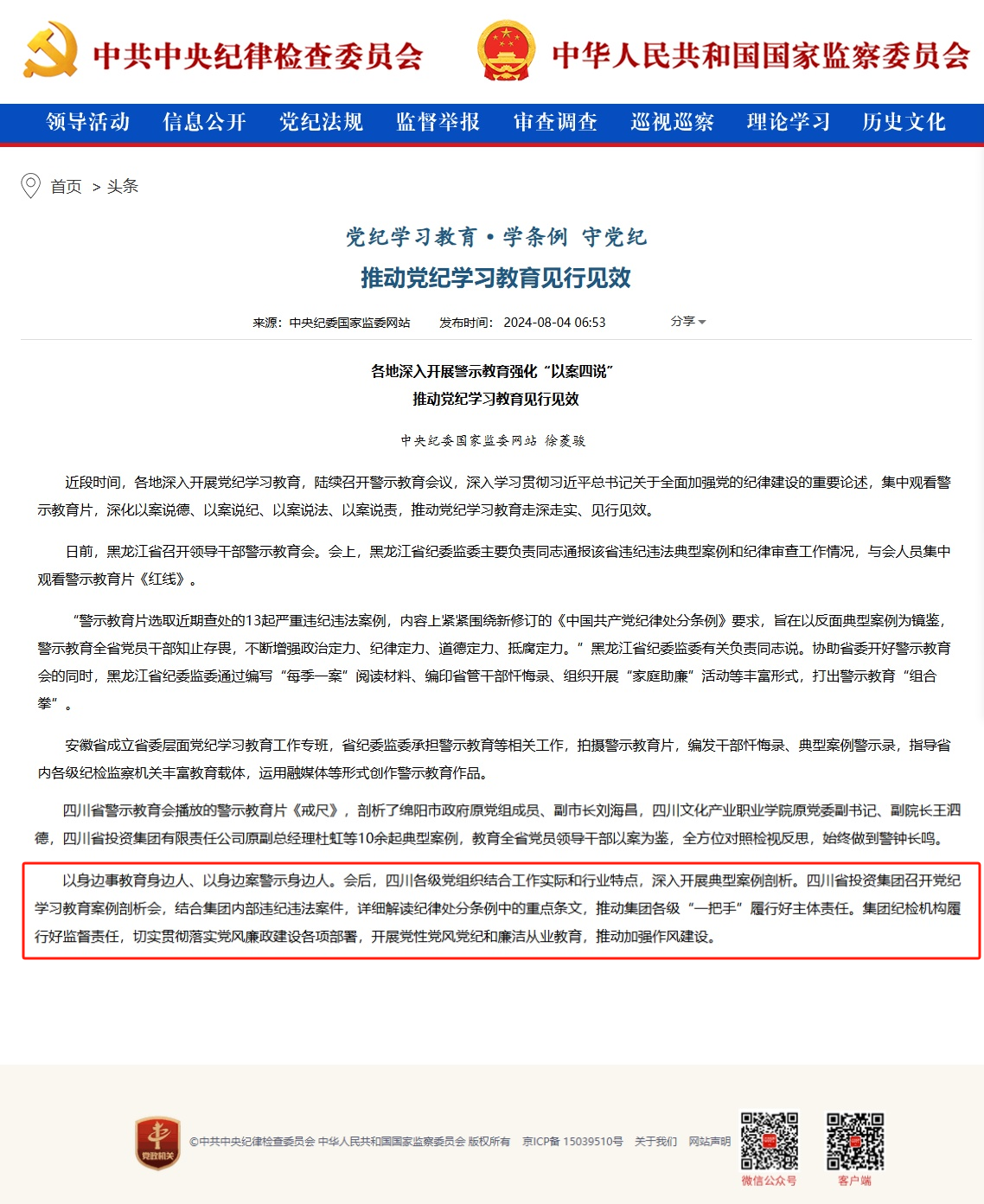 中紀(jì)委網(wǎng)站介紹川投做法:“以案說(shuō)紀(jì)”推動(dòng)黨紀(jì)學(xué)習(xí)教育見(jiàn)行見(jiàn)效