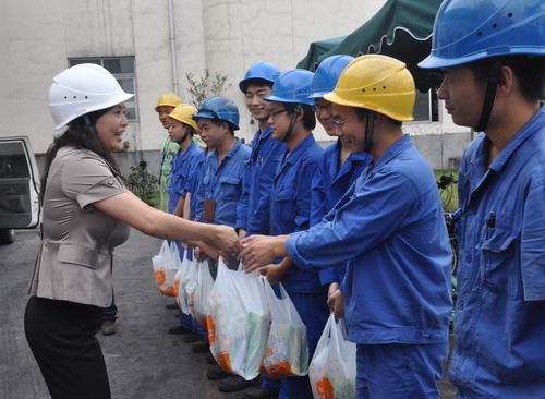 會(huì)后,在所屬企業(yè)相關(guān)領(lǐng)導(dǎo)的陪同下,吳主席一行到生產(chǎn)車間看望慰問(wèn)了正在辛勤勞動(dòng)的一線員工,并送上了藥品、飲料、礦泉水、茶葉等防暑降溫用品,表達(dá)了集團(tuán)黨政工對(duì)生產(chǎn)一線工人的關(guān)愛(ài)之情。吳主席在生產(chǎn)車間、維修現(xiàn)場(chǎng)關(guān)切詢問(wèn)了員工的工作條件、勞動(dòng)保護(hù)以及生產(chǎn)生活情況,囑咐企業(yè)領(lǐng)導(dǎo)在高溫酷熱及雙節(jié)期間合理安排工作,采取有效措施,切實(shí)做好防暑降溫、勞動(dòng)保護(hù)等工作,保護(hù)好廣大員工的身心健康。最后,吳主席要求,企業(yè)各級(jí)工會(huì)在企業(yè)黨政的帶領(lǐng)下,充分調(diào)動(dòng)廣大員工的積極性,確保年度各項(xiàng)生產(chǎn)任務(wù)的順利完成,并代表集團(tuán)黨政工向廣大一線員工致以節(jié)日的祝福。