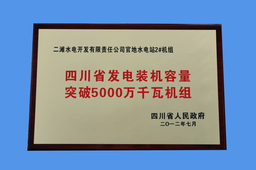 7月2日下午,四川省人民政府在二灘公司集控大樓會議中心2樓會議廳舉行“四川省電力建設(shè)新聞發(fā)布會暨發(fā)電裝機突破5000萬千瓦授牌儀式”,省政府副省長王寧向二灘公司雅礱江官地水電站2號機組授予“四川省電力裝機容量突破5000萬千瓦機組”牌匾。儀式由四川省政府副秘書長、研究室主任萬鵬龍主持,四川省發(fā)改委副主任邵小龍現(xiàn)場通報了四川省電力建設(shè)情況,國家開發(fā)投資公司副總裁李冰、二灘公司總經(jīng)理陳云華在儀式上致辭,川投集團公司副總經(jīng)理伍康定出席授牌儀式,人民日報、新華社、中國新聞社等9家媒體記者對儀式進行了報道。