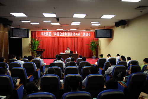 為深入開展“實現(xiàn)偉大中國夢、建設(shè)美麗繁榮和諧四川”主題教育活動,持續(xù)推動企業(yè)改革發(fā)展,積極創(chuàng)建“建設(shè)發(fā)展快、質(zhì)量優(yōu)、和諧美的‘三型企業(yè)’”, 2013年6月14日上午,集團公司組織召開了“構(gòu)建企業(yè)和諧勞動關(guān)系”專題培訓(xùn)會,會議由集團公司總經(jīng)濟師薛東兵主持,總經(jīng)理助理兼人力資源部經(jīng)理石平出席會議,集團公司人力資源部、黨群部人員及集團公司所屬企業(yè)分管人事、工會的領(lǐng)導(dǎo),人力資源部、工會負責(zé)人及相關(guān)工作人員參會,會議特別邀請了四川省人力資源和社會保障廳勞動關(guān)系處陳泉處長為大家授課。