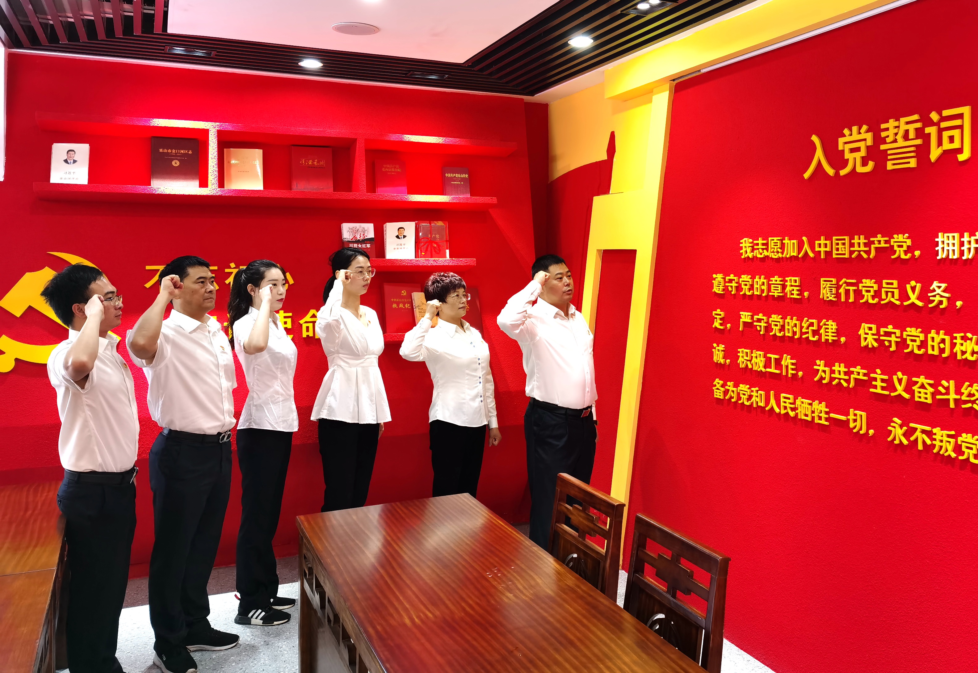 在實地體驗學習中,全體黨員在樂山市金口河鐵道兵博物館感悟“汗水溶化千層巖,鐵錘揮舞萬山開”的英雄氣概和“不畏艱險、舍生忘死、艱苦奮斗,無私奉獻”的鐵道兵精神,在鐵道兵博物館內聆聽微黨課、重溫入黨誓詞。