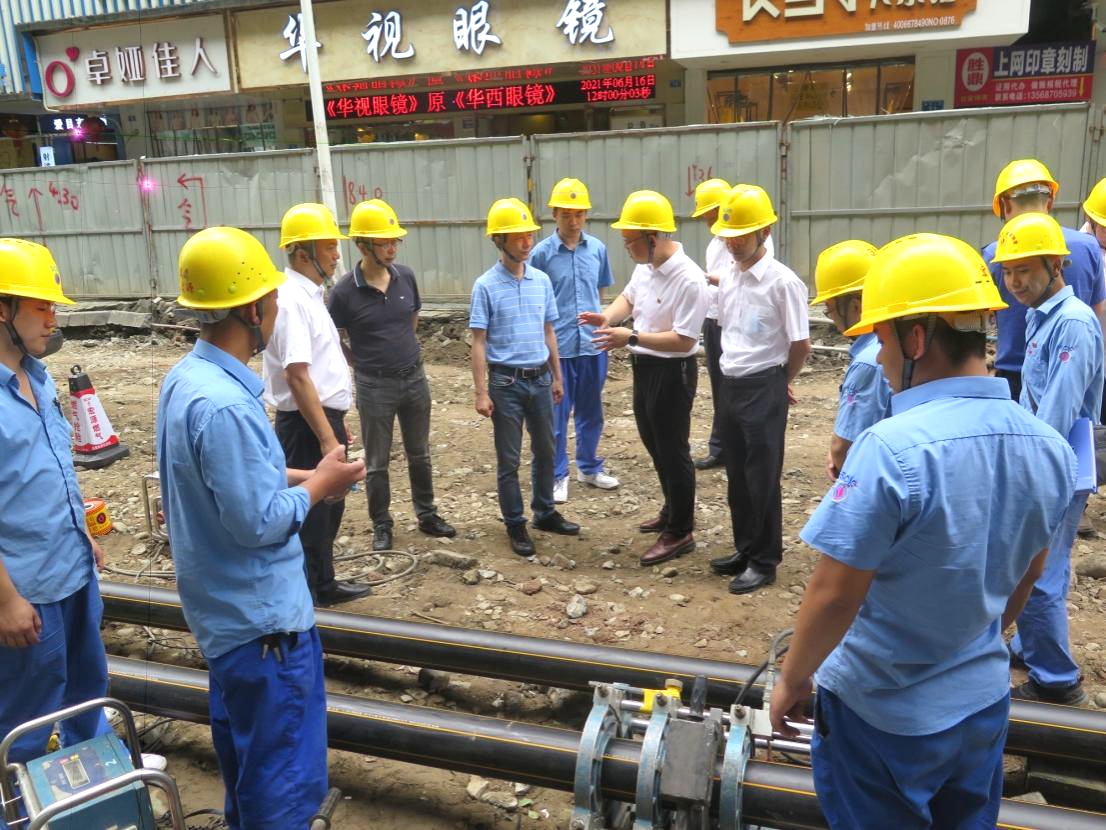 16日,張昊一行實(shí)地查看了川投水務(wù)射洪水司龍灘村取水口防汛技改工程,隨后深入廠區(qū)檢查制水生產(chǎn)工藝流程及水質(zhì)監(jiān)測(cè)情況;在宏源燃?xì)夤?/span>天然氣儲(chǔ)備站,張昊詳細(xì)了解了氣源存儲(chǔ)、供氣規(guī)模、埋地管網(wǎng)及安全隱患排查整改等情況,并查看了老舊管網(wǎng)改造現(xiàn)場(chǎng)PE管道焊接進(jìn)度和工程質(zhì)量,查閱了管網(wǎng)整改方案與現(xiàn)場(chǎng)質(zhì)量管控記錄。