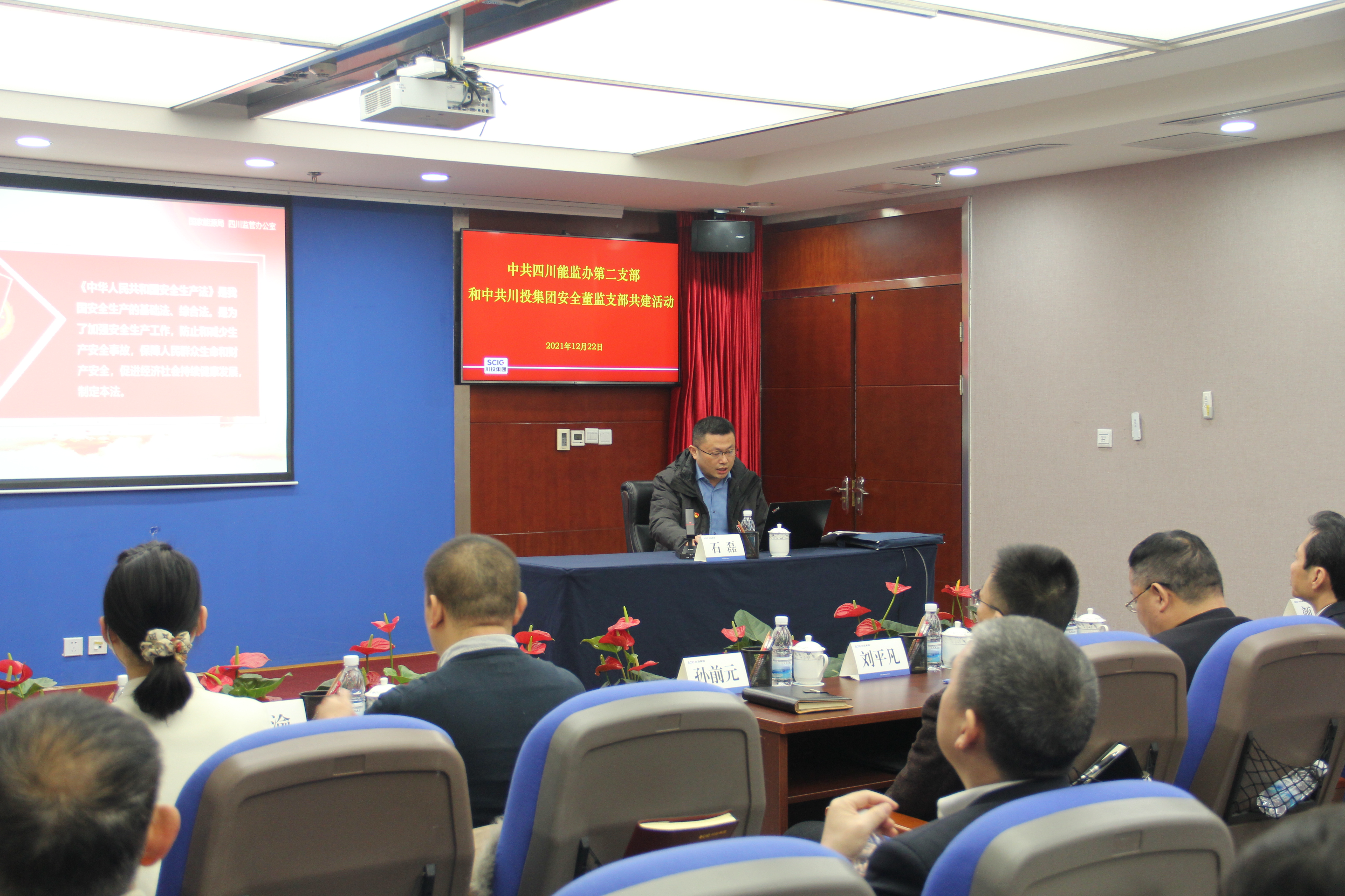 張昊作為支部代表充分感謝四川能監(jiān)辦多年來對川投集團的大力支持,希望四川能監(jiān)辦繼續(xù)幫助支持川投集團做強做優(yōu)做大能源產(chǎn)業(yè)。張昊指出,此次支部共建活動既是黨建工作開展的要求,從業(yè)務層面來講,也是四川能監(jiān)辦深入企業(yè)、了解企業(yè)、服務企業(yè)、宣貫監(jiān)管政策和要求的一種方式,活動意義重大,希望以此次為開端,加強黨建和業(yè)務工作互聯(lián)互動、深度融合,推動各項工作再上新臺階。