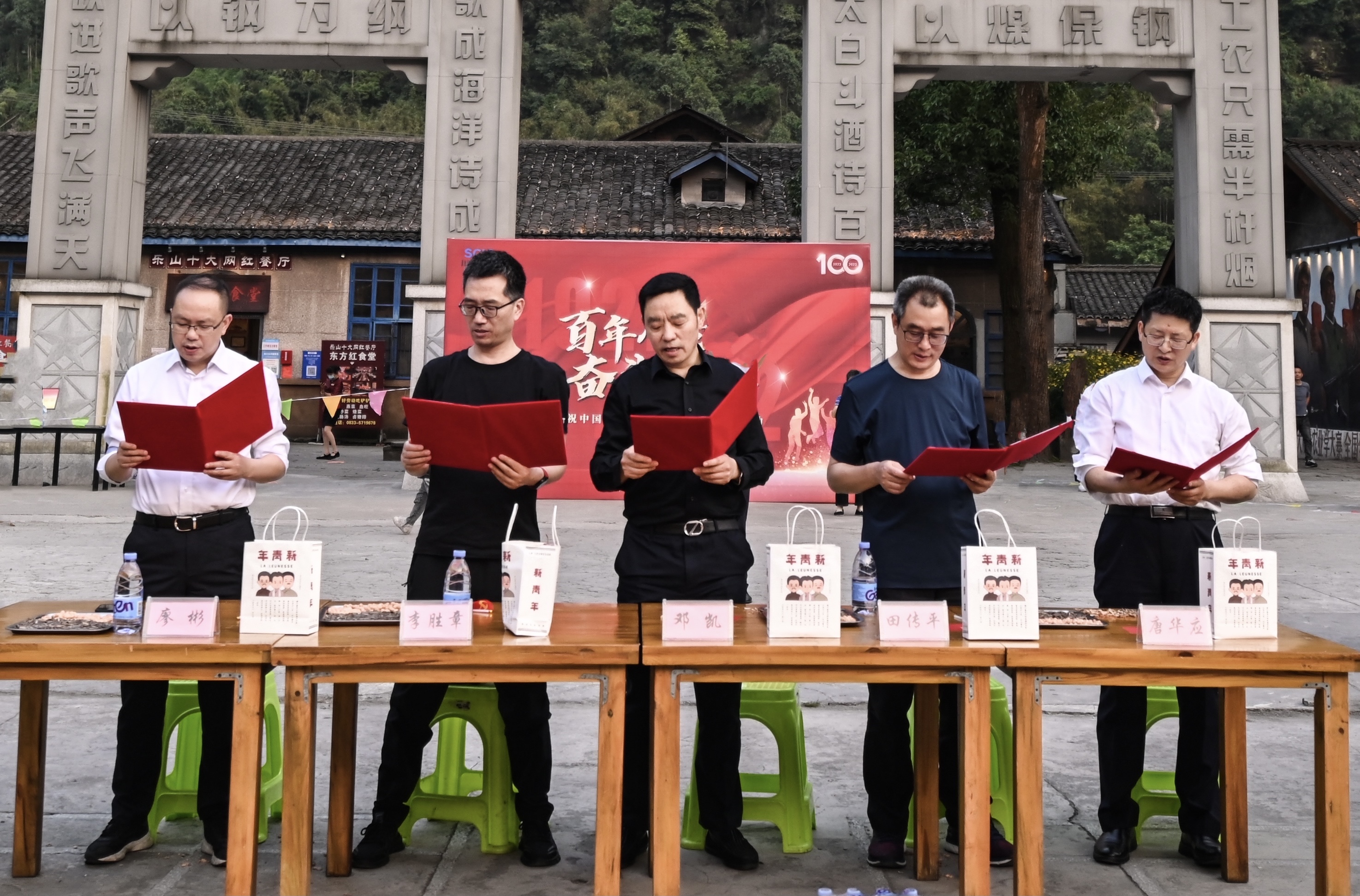 活動現(xiàn)場,鄧凱分別向“嘉陽煤礦團總支部”和“川投峨旅講解服務團隊”授予“青年突擊隊”和“青年文明號”旗幟。青年代表們集合在共青團的旗幟下,齊唱團歌,重溫入團誓詞。全體人員齊聲誦讀李大釗先生《青春》節(jié)選片段,合唱《我和我的祖國》《紅旗飄飄》等主旋律歌曲,在誦讀聲中銘記激情豪邁的覺醒力量,在歌唱中激揚青春逐夢的奮進旋律。