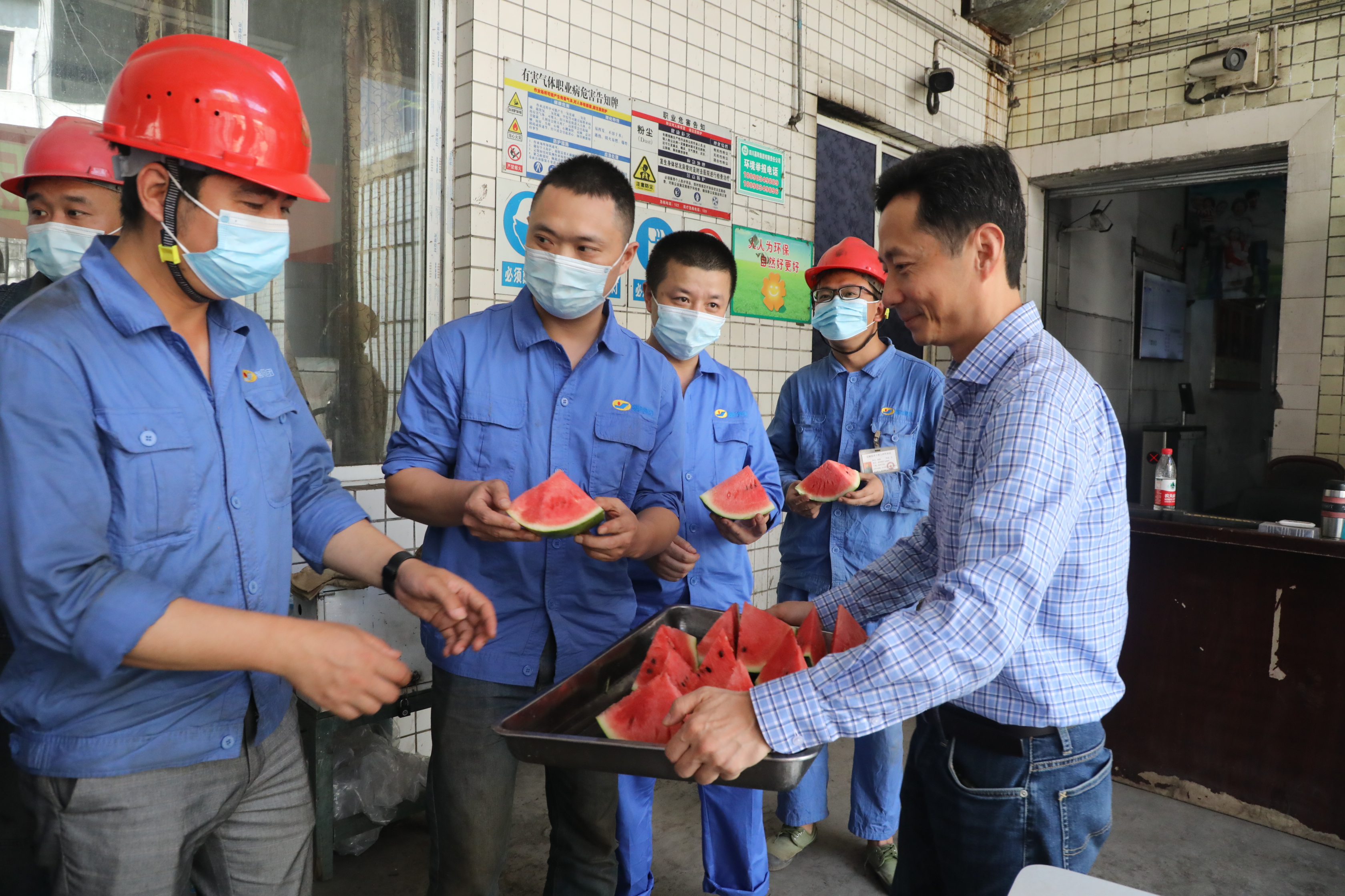 6月7日,集團(tuán)公司副總經(jīng)理張昊率隊到嘉陽看望慰問一線高溫崗位職工,為他們送上清涼和關(guān)懷。
