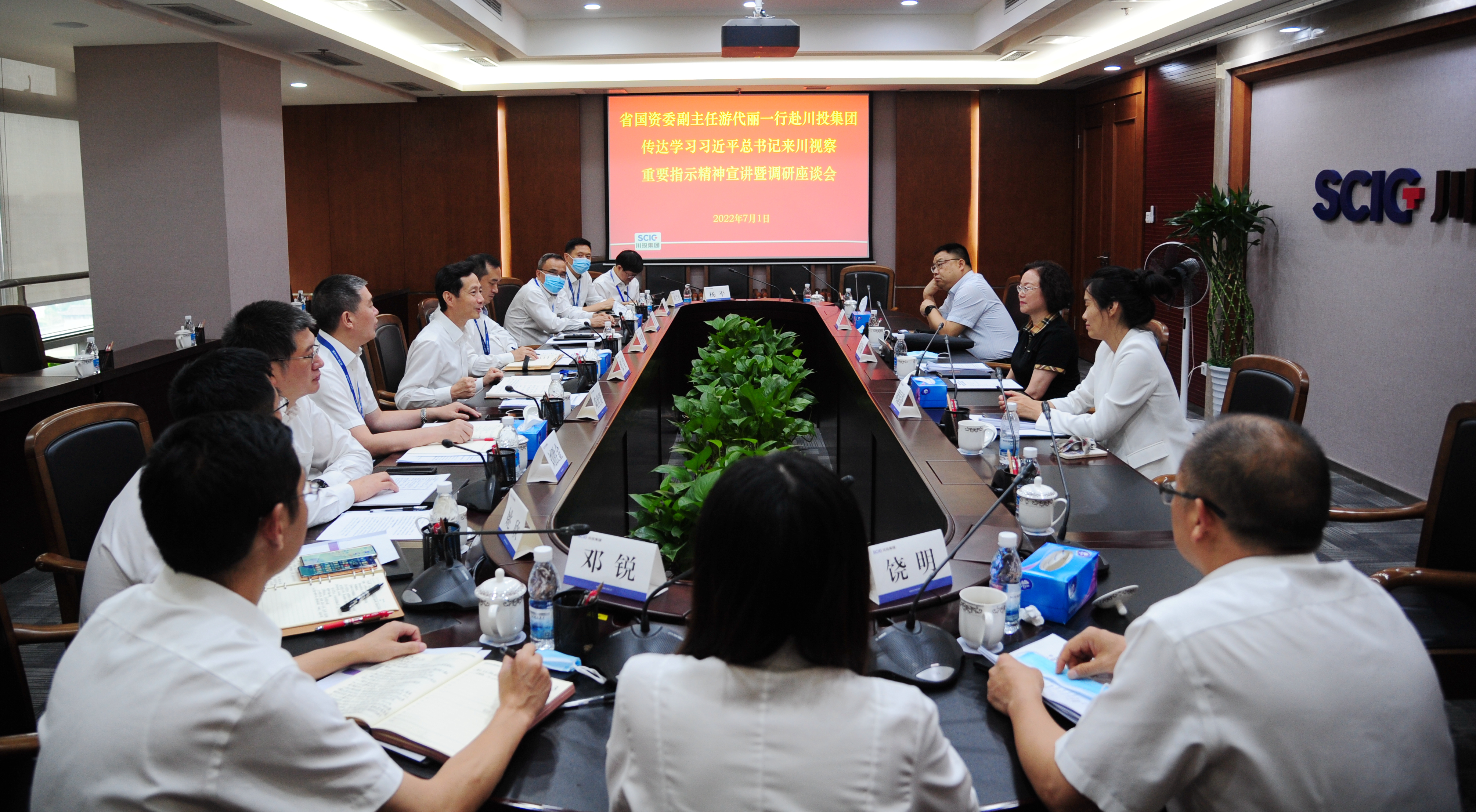 根據(jù)省國資委黨委統(tǒng)一安排部署,7月1日,省國資委黨委委員、副主任游代麗帶隊到川投集團宣講習(xí)近平總書記來川視察重要指示精神,并調(diào)研企業(yè)生產(chǎn)經(jīng)營、電力保供、安全生產(chǎn)、疫情防控等工作情況。集團公司副總經(jīng)理張昊參加座談。