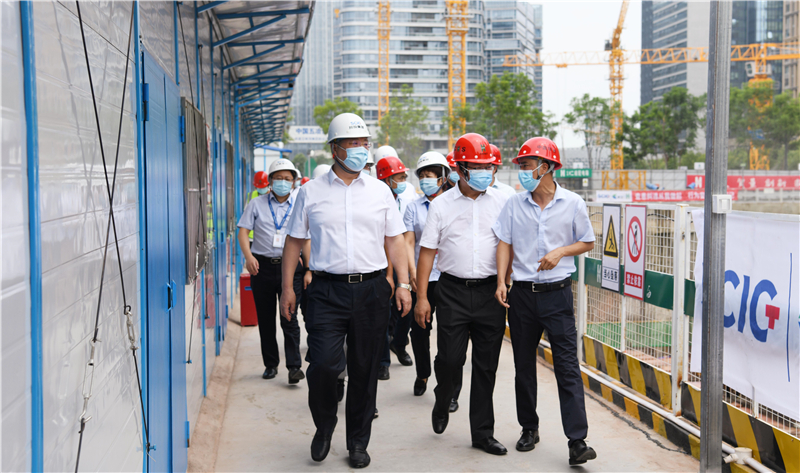 李文志一行深入施工作業(yè)現(xiàn)場,詳細了解項目建設進展,認真聽取項目近期疫情防控、施工安全、防汛應急等有關工作的匯報,親切看望慰問一線作業(yè)人員,對大家戰(zhàn)高溫、斗酷暑、保進度的辛勤付出表示感謝,并叮囑大家強化安全意識,做好防暑降溫措施,注意勞逸結合。