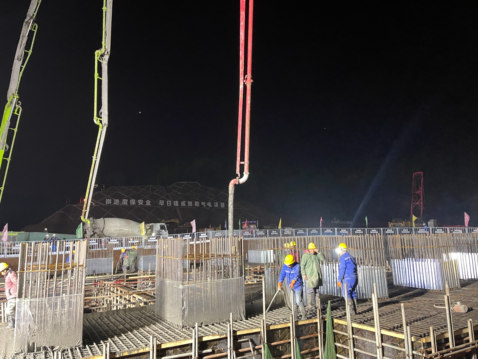 12月2日凌晨4點(diǎn)46分,經(jīng)過近11小時(shí)的連續(xù)奮戰(zhàn),資陽(yáng)燃?xì)怆娬?2余熱鍋爐底板基礎(chǔ)澆筑圓滿完成。該項(xiàng)目節(jié)點(diǎn),是資陽(yáng)燃?xì)怆娬纠^11月5日#1余熱鍋爐筏板基礎(chǔ)澆筑后的第二個(gè)大體積混凝土澆筑,時(shí)間僅一個(gè)月。
