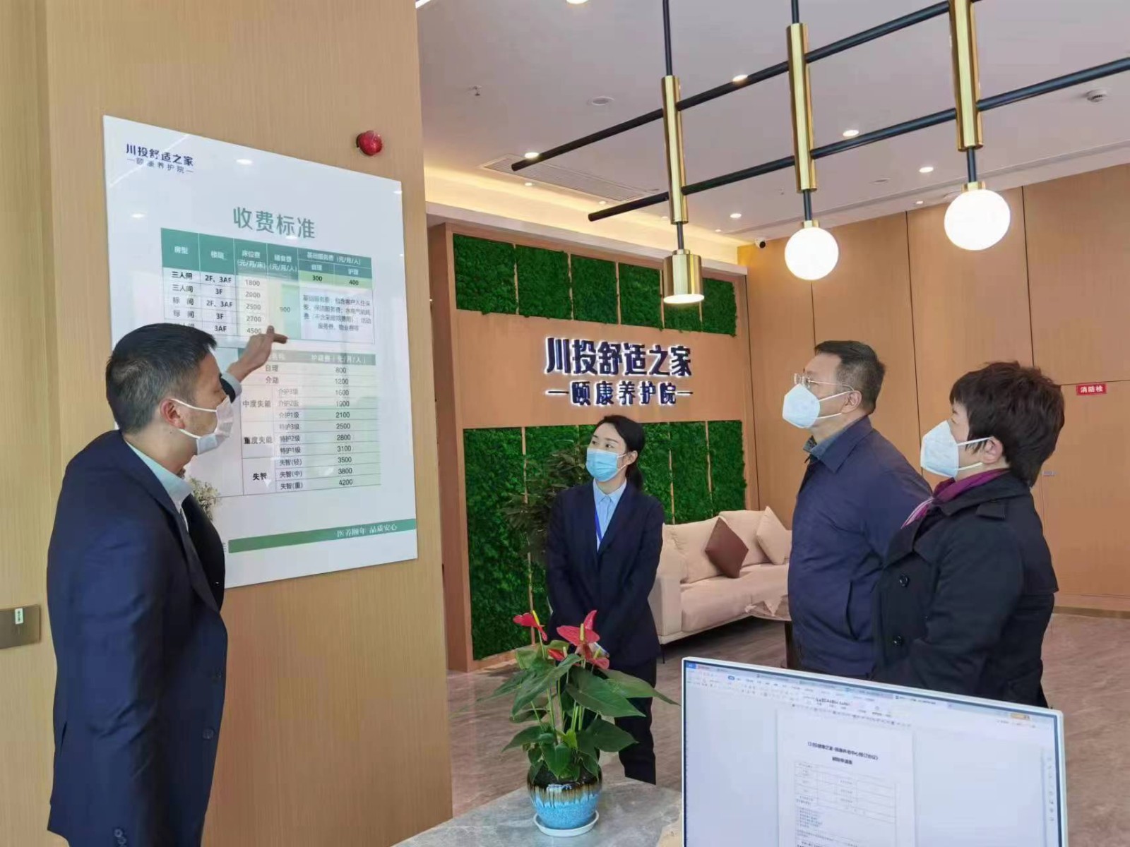 李文志一行實地察看了養(yǎng)護院樓層布局、功能區(qū)運行、設備設施運行情況,重點了解了養(yǎng)護院運營、服務標準化建設、醫(yī)護人員配備及資質(zhì)等情況。李文志指出,作為川投集團“一體兩翼”戰(zhàn)略布局的重要一翼,川投大健康產(chǎn)業(yè)集團要以“頤養(yǎng)晚年的倡導者、健康晚年的守護者、幸福晚年的踐行者”為使命,對標行業(yè)一流水平,提升管理服務質(zhì)量,完善品牌體系及內(nèi)涵,打造康養(yǎng)產(chǎn)業(yè)城市核心機構(gòu)養(yǎng)老示范標桿。要圍繞“中國健康谷”IP,致力培育推廣“川投舒適之家”品牌和產(chǎn)品體系,聚力打造規(guī)?;⒓s化、可持續(xù)化的養(yǎng)老服務投資運營平臺,深度賦能大健康城市康養(yǎng)業(yè)務板塊,突顯國企辦養(yǎng)老“領(lǐng)頭羊”作用。