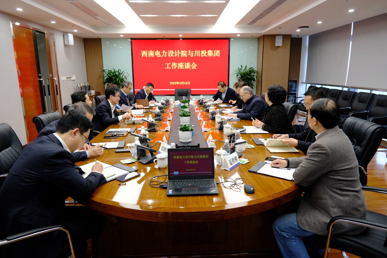 西南電力設(shè)計(jì)院黨委副書記、副董事長(zhǎng)李蕾,黨委委員、副總經(jīng)理毛永龍;西南電力設(shè)計(jì)院辦公室以及發(fā)電工程公司相關(guān)負(fù)責(zé)同志川投集團(tuán)副總經(jīng)理鄭世紅、張昊,川投集團(tuán)辦公室、戰(zhàn)略投資部,川投燃電以及川投新能源相關(guān)負(fù)責(zé)同志參加會(huì)議。