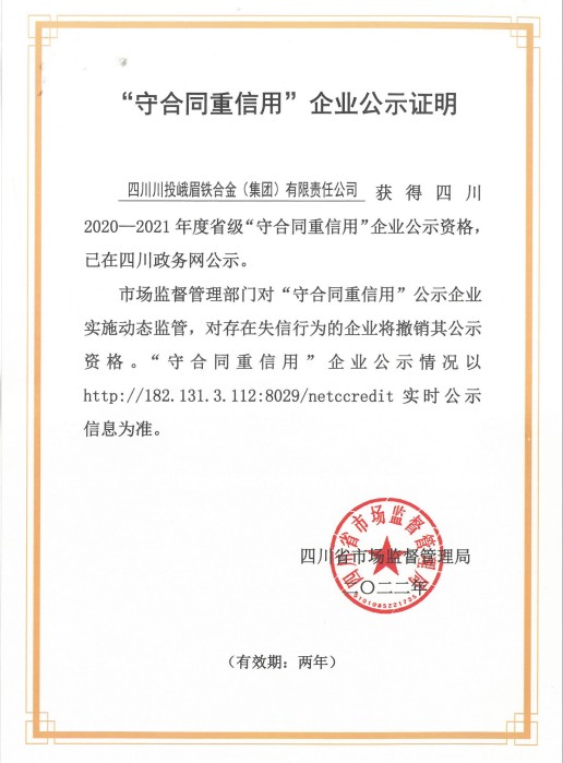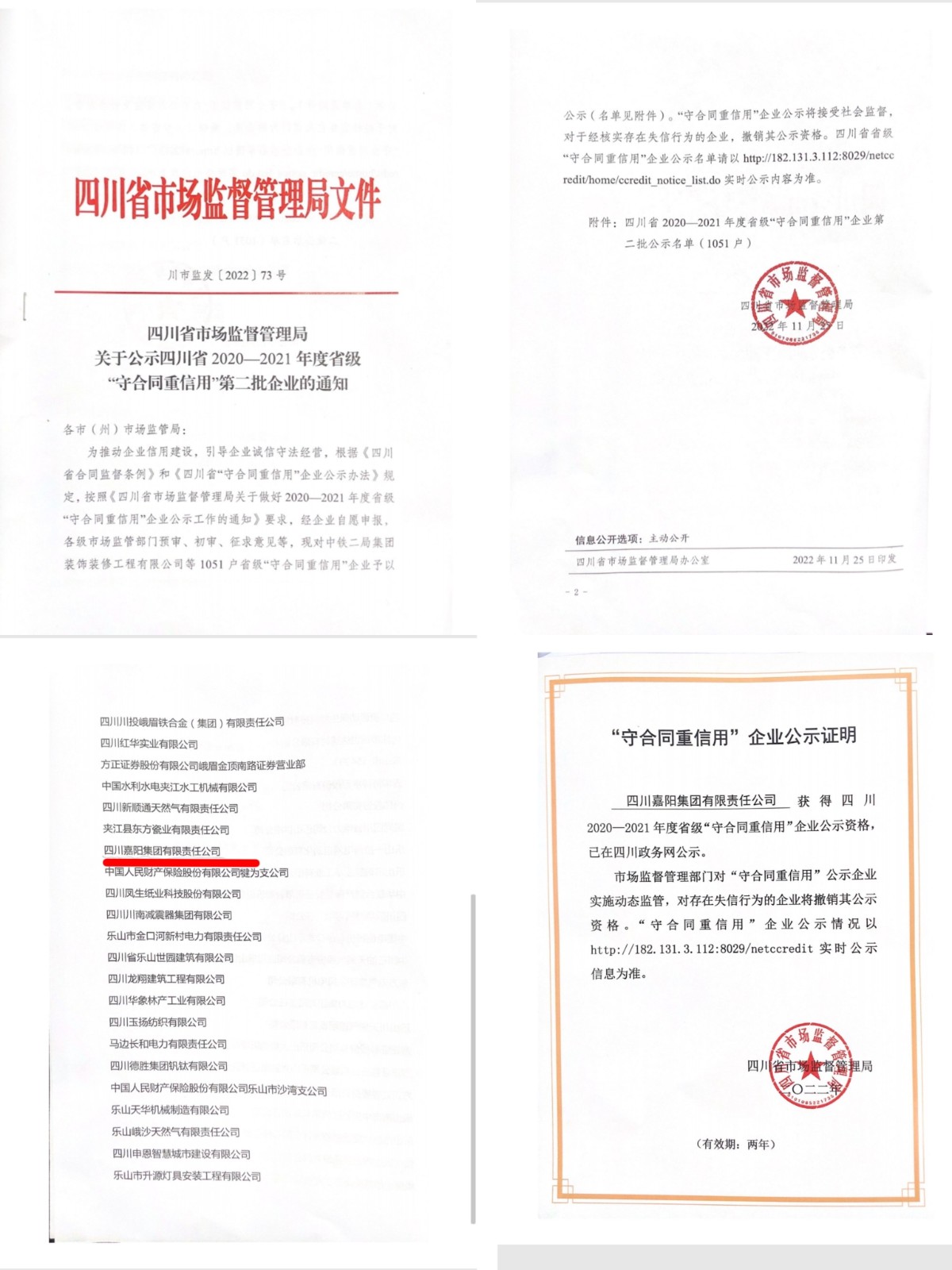 近日,四川2020—2021年度省級(jí)“守合同重信用”企業(yè)評(píng)選結(jié)果揭曉。