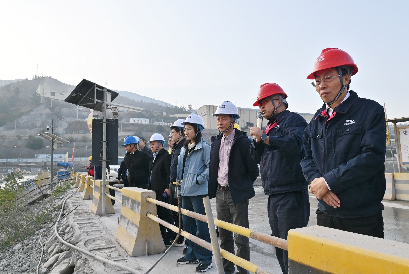 張昊一行深入銀江水電站施工現(xiàn)場,詳細檢查了大壩基坑、施工變電站、銀江大橋等區(qū)域,查看了智慧工地安全巡檢系統(tǒng)。隨后,對攀水電公司就傳達學(xué)習(xí)貫徹落實習(xí)近平總書記重要指示精神和上級政府有關(guān)會議要求情況、重要專項活動開展情況等進行了詳細檢查,并聽取了攀水電公司下階段工程建設(shè)、安全管理情況匯報,肯定了攀水電公司為保持銀江水電站安全生產(chǎn)平穩(wěn)可控所做出的努力。