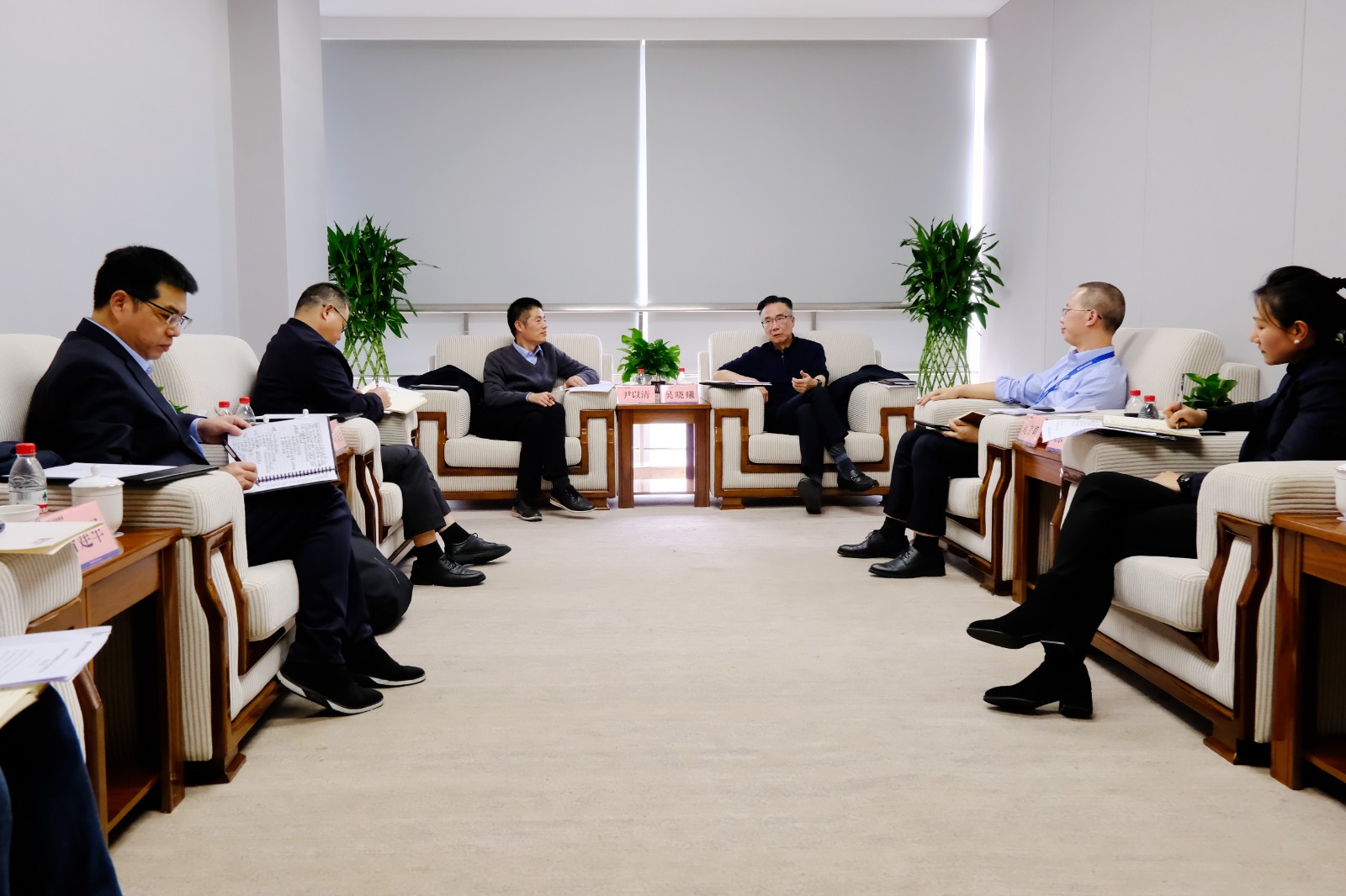 中電福溪黨委委員、董事、總經(jīng)理茍發(fā)全,黨委委員、董事、副總經(jīng)理吳建斌,綜合部經(jīng)理曹建軍;集團(tuán)公司辦公室主任、董事會(huì)秘書周家超,經(jīng)營管理部部長涂瑩,戰(zhàn)略投資部副部長張一楊參加座談。