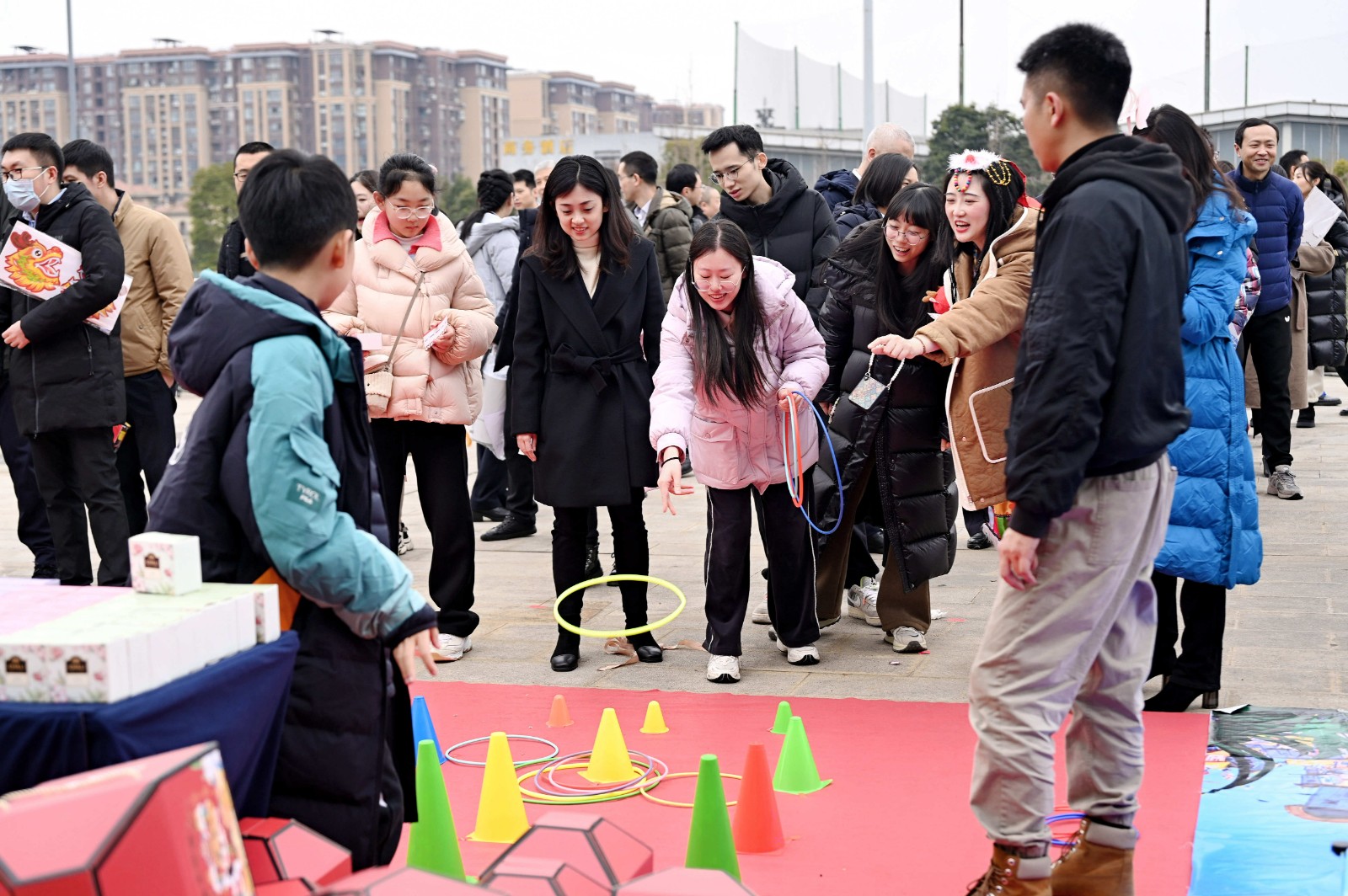 趣味游園吸引了眾多干部職工互動(dòng)體驗(yàn),現(xiàn)場人頭攢動(dòng),熱鬧祥和。寫春聯(lián)、做龍燈、品美食、玩游戲,多區(qū)域打卡,贏取獎(jiǎng)品,或是約三五同事,取幾顆瓜果雜糧,掛一壺濃醇紅茶圍爐歡談,歡聲笑語不絕于耳。
