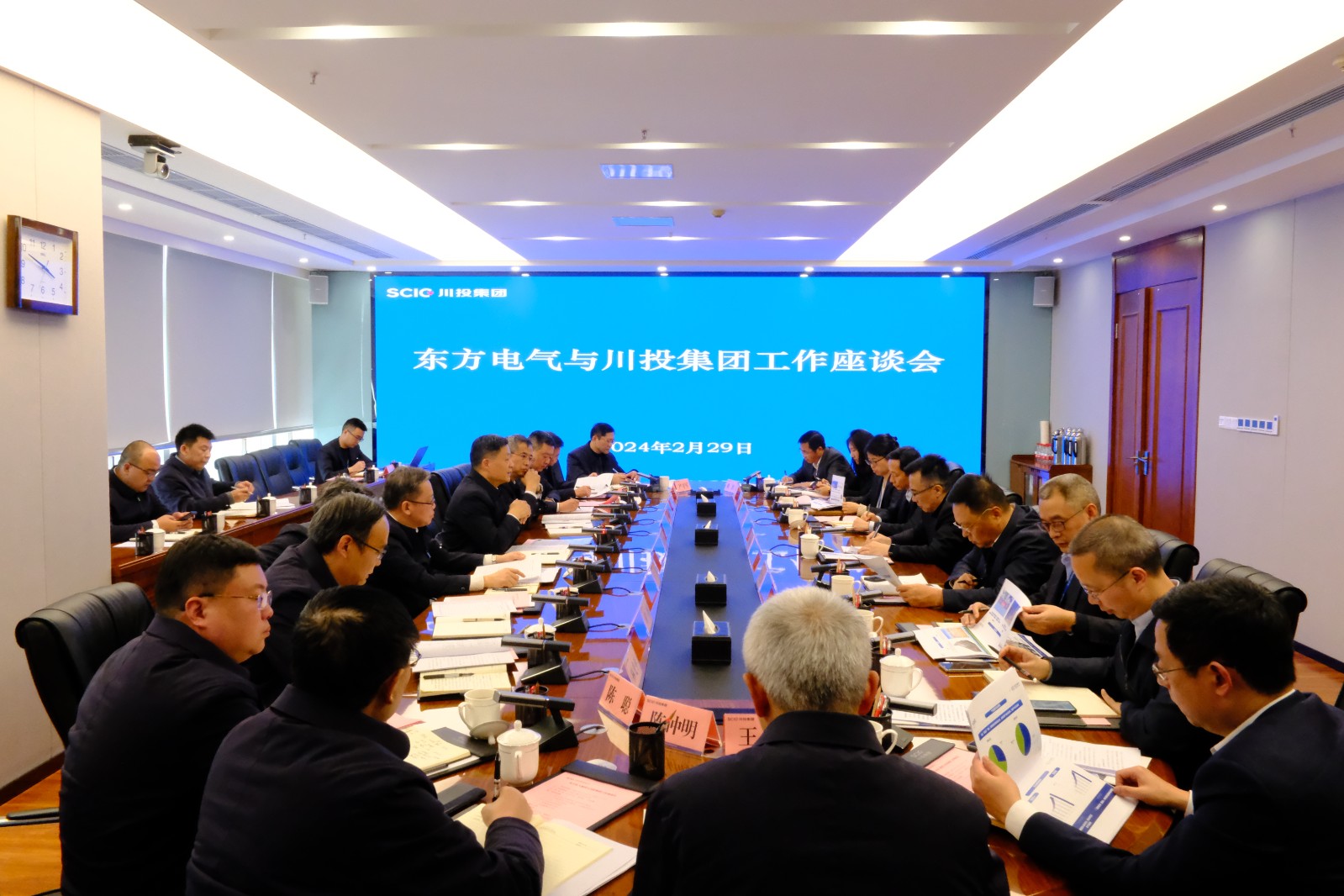 2月29日,東方電氣集團(tuán)黨組書記、董事長俞培根一行到訪川投集團(tuán)。集團(tuán)公司黨委書記、董事長吳曉曦出席并主持會議,黨委副書記、副董事長、總經(jīng)理李文志參加會議。
