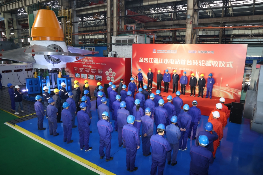 4月28日,川投集團下屬川投能源銀江水電站工程建設再傳喜訊,首臺機組轉輪在哈爾濱順利通過出廠驗收,為銀江水電站實現2024年“保一爭二”投產發(fā)電目標奠定堅實基礎。哈電電機公司召開座談會并舉行了出廠驗收儀式,川投集團黨委副書記、副董事長、總經理李文志率隊參加,哈電集團副總裁、哈電電機公司黨委書記、董事長王貴等出席。