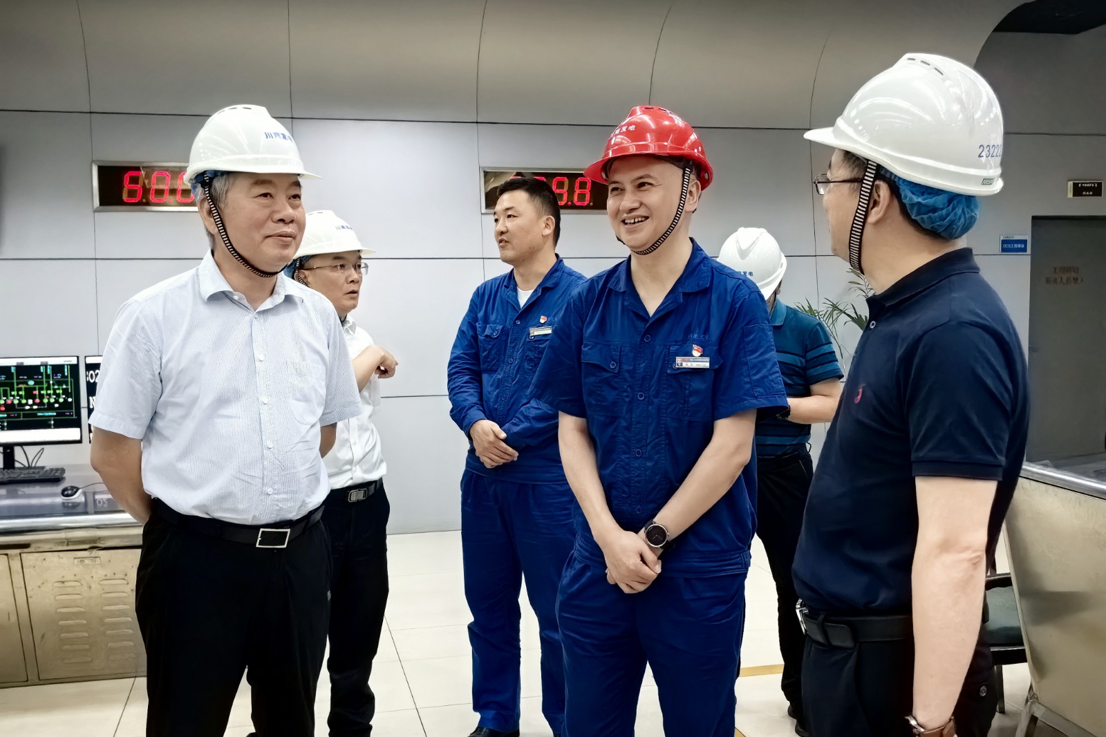 張俊利一行到達公司后,深入公司生產(chǎn)現(xiàn)場了解迎峰度夏電力保供相關(guān)工作開展情況。在集中控制室,陳嵩向張俊利一行介紹了公司安全生產(chǎn)、環(huán)境保護、電力電煤保供、經(jīng)營發(fā)展等工作情況,并對國網(wǎng)四川省電力公司長期以來給予公司的支持和幫助表示由衷感謝。陳嵩表示,目前公司機組運行狀態(tài)良好、電煤儲備充足、安全生產(chǎn)形勢平穩(wěn),正以“滿血”狀態(tài)投入到迎峰度夏電力保供工作。