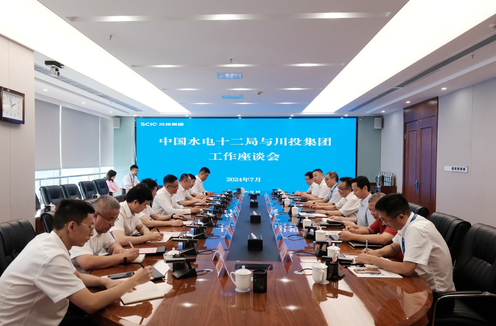 7月25日,中國(guó)水電十二局黨委副書(shū)記、總經(jīng)理盛峰帶隊(duì)到訪川投集團(tuán),舉行工作座談。集團(tuán)公司黨委書(shū)記、董事長(zhǎng)吳曉曦出席會(huì)議并主持座談。