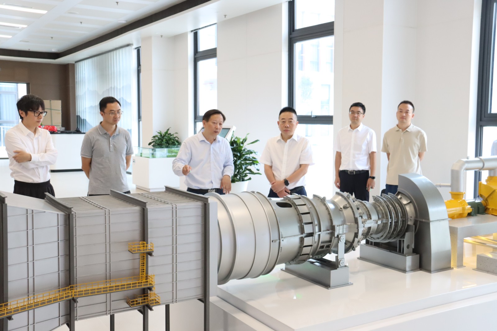 在一樓展廳,肖長青觀看了項目建設(shè)規(guī)模、建設(shè)歷程宣傳片,詳細了解H級燃機構(gòu)造、運轉(zhuǎn)原理;在智慧管控中心,通過監(jiān)控盤了解發(fā)電各項指標參數(shù)、運行情況;在機組15米平臺,實地查看1號機組和2號機組。隨后,肖長青一行聽取了川投燃電、資陽氣電項目投資完成情況及資陽燃氣電站項目安全生產(chǎn)、工程推進、1號機組生產(chǎn)運營等方面工作匯報,詳細了解資陽氣電當前遇到的困難以及下半年工作安排。