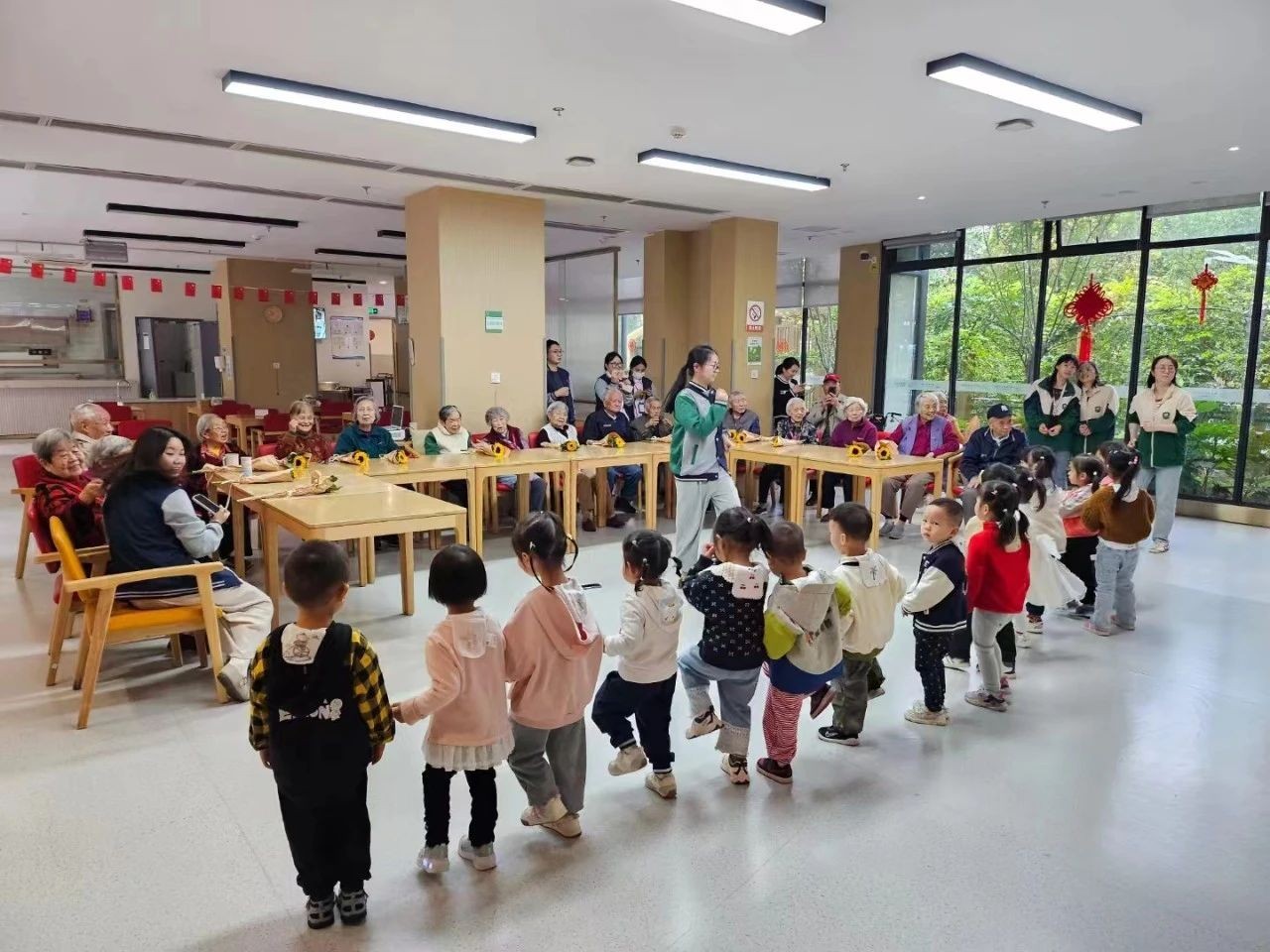 川投舒適之家·頤康養(yǎng)老中心聯(lián)合楷石中錦城森林幼兒園師生開展“共繪夕陽紅,溫暖滿人間”活動。孩子們手捧鮮花,用最純真的聲音向機構(gòu)在住長者們送上重陽節(jié)祝福,并帶來了豐富多彩的節(jié)目表演和別開生面的重陽節(jié)主題手工課。一句句飽含深情的話語,一束束鮮花,一個個笑容,一段段舞蹈、朗誦、情景劇等文藝表演,一件件精美的折紙、賀卡、手繪作品,長者們掌聲與歡笑不斷。