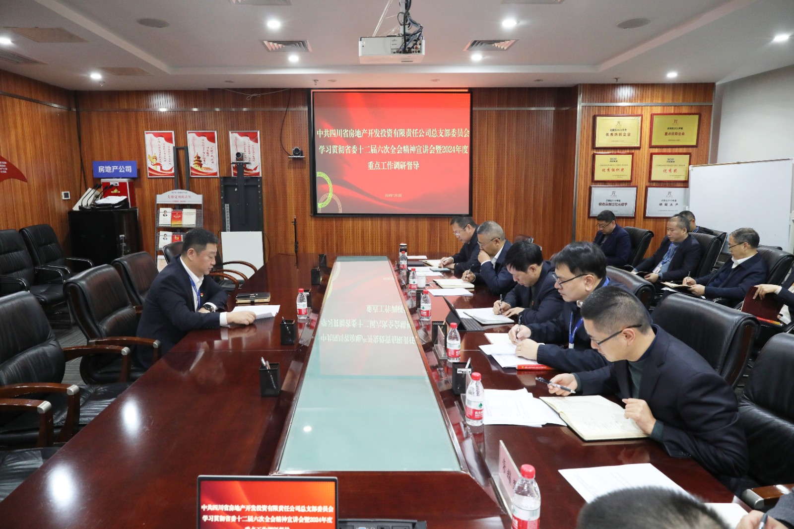黃勁從“深刻認識全會的重大意義、準確把握全會的精神實質(zhì)、全面推動全會精神落實”等三個方面對省委十二屆六次全會精神進行了重點解讀,并結(jié)合川投集團、川投房地產(chǎn)具體工作,詳細闡述了如何將省委的決策部署落實到實際工作當中。