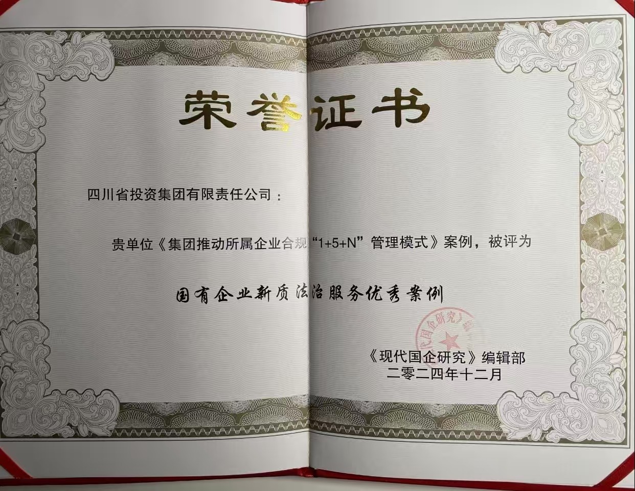 2024年12月15日,由《現(xiàn)代國企研究》雜志主辦、廣西壯族自治區(qū)國資委協(xié)辦的“2024現(xiàn)代國企發(fā)展年會(huì)”在北京召開,會(huì)上發(fā)布了“國有企業(yè)新質(zhì)法治服務(wù)優(yōu)秀案例”,四川省投資集團(tuán)有限責(zé)任公司(以下簡稱“川投集團(tuán)”)榜上有名。