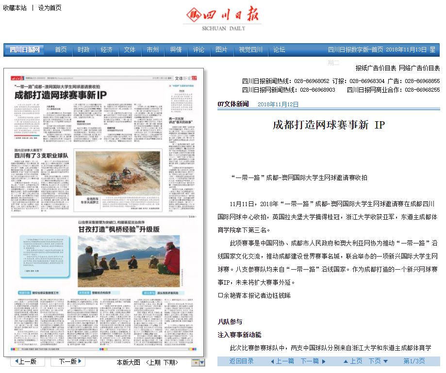 此項賽事是中國網(wǎng)協(xié)、成都市人民政府和澳大利亞網(wǎng)協(xié)為推動“一帶一路”沿線國家文化交流,推動成都建設(shè)世界賽事名城,聯(lián)合舉辦的一項新興國際大學(xué)生網(wǎng)球賽。八支參賽隊均來自“一帶一路”沿線國家。作為成都打造的一個新興網(wǎng)球賽事IP,未來將擴(kuò)大賽事外延。