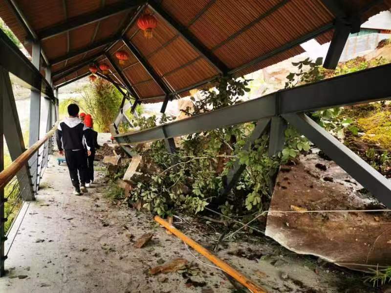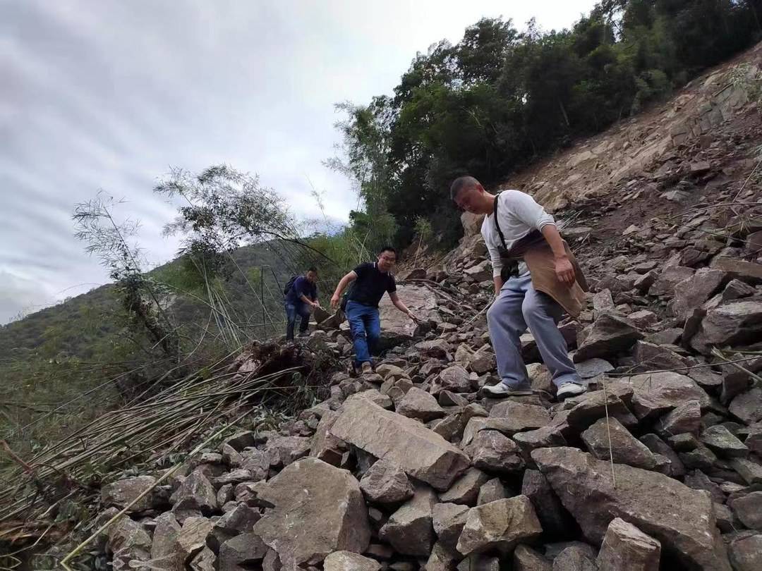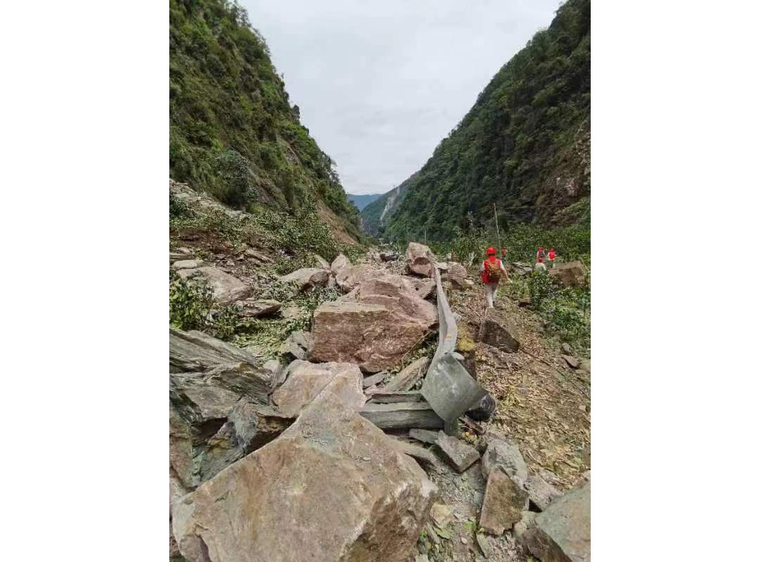 楊超龍、伍超一行則啟程趕往田灣河公司草科鄉(xiāng)生產(chǎn)現(xiàn)場。受強(qiáng)震影響,新民鄉(xiāng)至草科鄉(xiāng)原本只需半個小時車程的山路,出現(xiàn)了多處地基垮塌,車輛根本無法通行。冒著連續(xù)余震和不時滑落的滾石,楊超龍一行歷經(jīng)七個小時的艱苦跋涉,途中兩次坐船周轉(zhuǎn),于17點(diǎn)50分抵達(dá)大發(fā)電站。