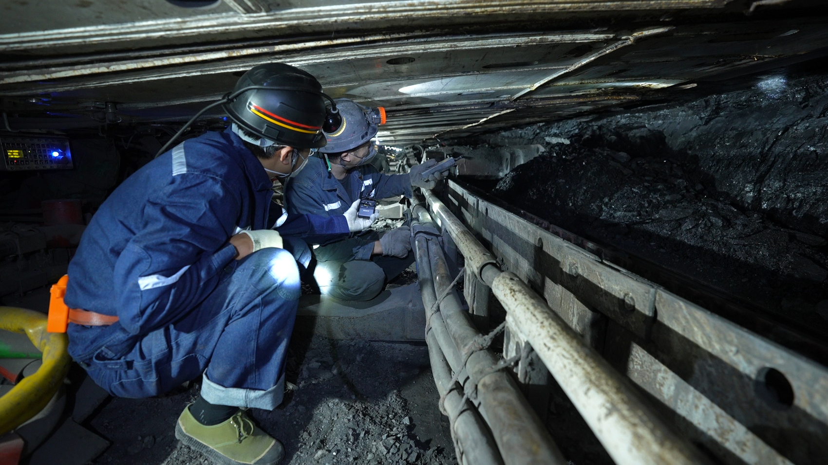 “遙控開采,是不是跟打游戲一樣?”下井前,我好奇詢問。同行的工人一臉嚴(yán)肅:“你下去就曉得了?!?br /> 走在巷道里,頭盔多次碰壁,膠鞋多次硌腳,遠(yuǎn)處不時(shí)傳來滴水聲和機(jī)械運(yùn)作聲,一次次讓我心跳加速。鉆進(jìn)矮小的工作面,頭抬不起來,肢體伸展不開,又讓我呼吸急促。眼前的一切都在對(duì)我說:沒那么簡(jiǎn)單。