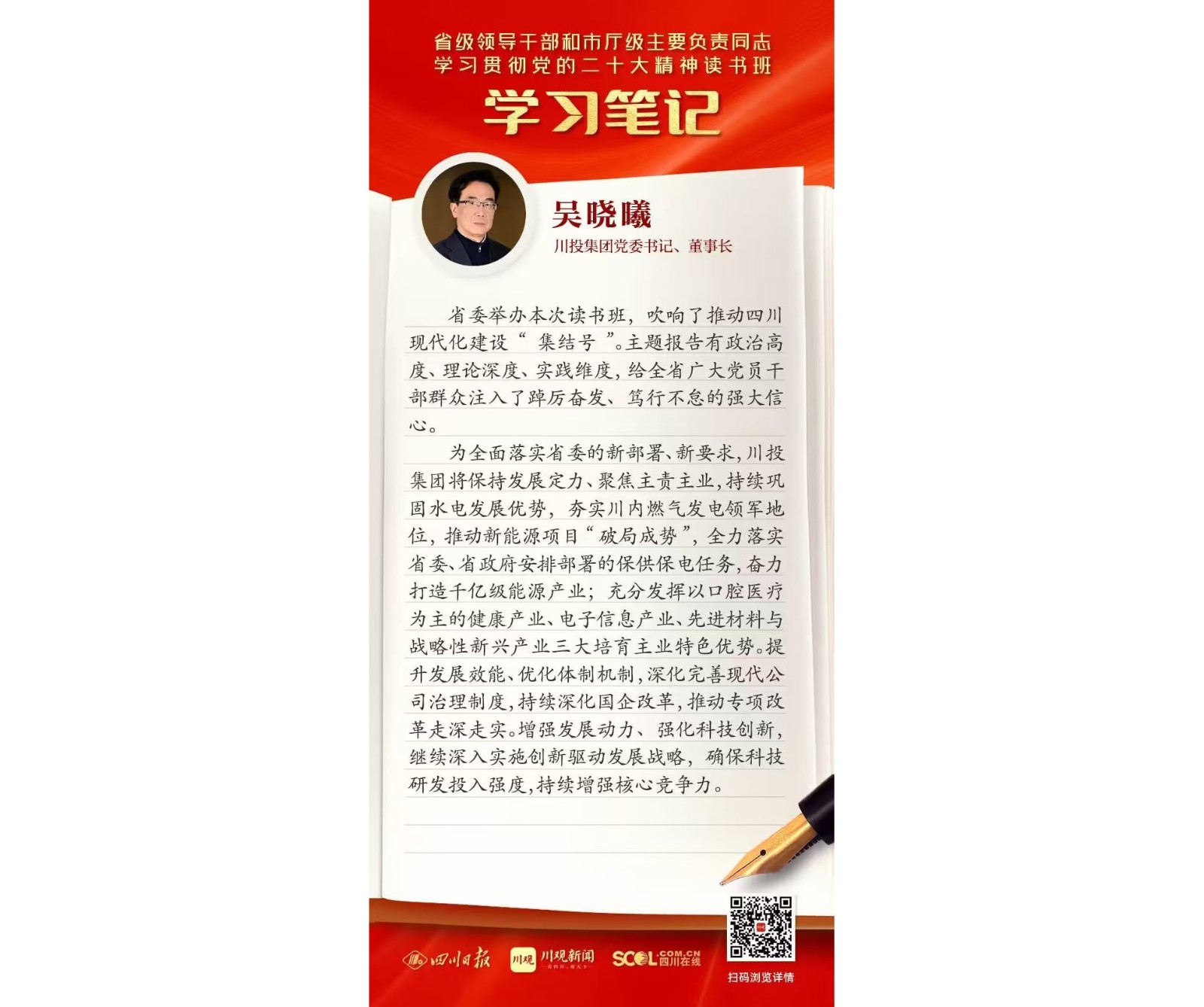 為全面落實省委的新部署、新要求,川投集團將保持發(fā)展定力、聚焦主責(zé)主業(yè),持續(xù)鞏固水電發(fā)展優(yōu)勢,夯實川內(nèi)燃氣發(fā)電領(lǐng)軍地位,推動新能源項目“破局成勢”,全力落實省委、省政府安排部署的保供保電任務(wù),奮力打造千億級能源產(chǎn)業(yè);充分發(fā)揮以口腔醫(yī)療為主的健康產(chǎn)業(yè)、電子信息產(chǎn)業(yè)、先進材料與戰(zhàn)略性新興產(chǎn)業(yè)三大培育主業(yè)特色優(yōu)勢。提升發(fā)展效能、優(yōu)化體制機制,深化完善現(xiàn)代公司治理制度,持續(xù)深化國企改革,推動專項改革走深走實。增強發(fā)展動力、強化科技創(chuàng)新,繼續(xù)深入實施創(chuàng)新驅(qū)動發(fā)展戰(zhàn)略,確保科技研發(fā)投入強度,持續(xù)增強核心競爭力。
