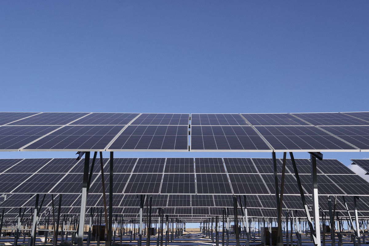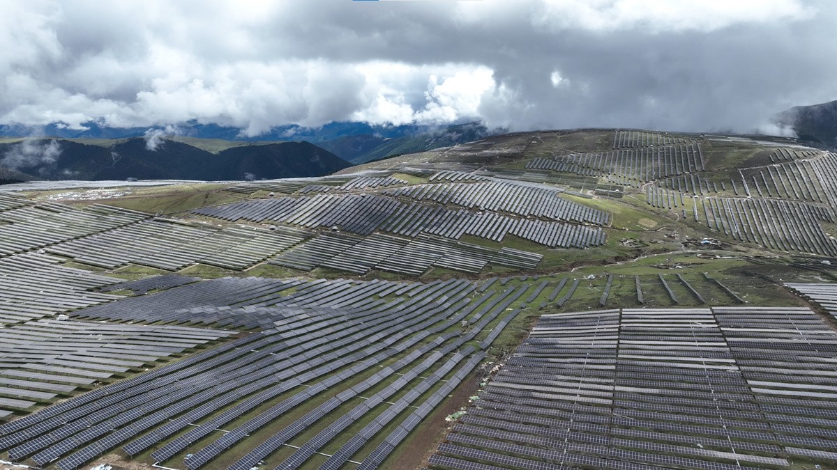 與兩河口水電站距離約50公里的柯拉一期光伏電站,200多萬塊光伏板,將最高海拔4600米的扎拉托桑山裝點(diǎn)成一片“光伏?!?。