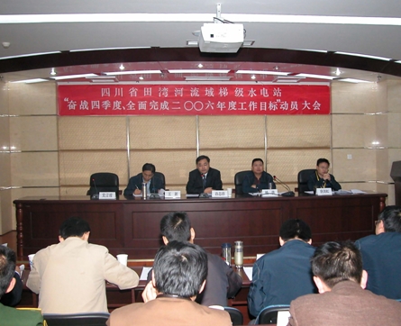 9月26日,公司在辦公樓二會(huì)議室召開田灣河流域梯級(jí)水電站“奮戰(zhàn)四季度、全面完成2006年度工作目標(biāo)”動(dòng)員大會(huì)。公司總經(jīng)理孫志祥,副總經(jīng)理?xiàng)詈?、王新,總工程師唐劍虹出席了?huì)議,公司各部門負(fù)責(zé)人、工程設(shè)計(jì)、監(jiān)理、各標(biāo)段施工單位負(fù)責(zé)人及相關(guān)人員參加了會(huì)議。