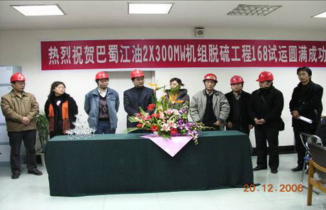 2006年12月20日23時30分,巴蜀江油2×300MW機組脫硫集中控制室內(nèi),川投集團副總經(jīng)理、巴蜀公司董事長兼總經(jīng)理、巴蜀江油燃電公司董事長蔣國俊興奮地大聲宣布:“2×300MW機組脫硫工程168小時試運行圓滿成功!”頓時,控制室內(nèi)響起掌聲一片,人人臉上洋溢著喜悅,歡歌笑語連綿不斷,所有在場的人員擊掌相慶,共同祝賀300MW機組脫硫工程順利通過168小時試運行,四川省及綿陽江油市環(huán)保部門領導共同見證了這一時刻。至此,江油擴建工程環(huán)保設施全部竣工投運,并提前11天完成國家環(huán)??偩窒逻_的脫硫限期整改任務,數(shù)日來壓在巴蜀江油燃電公司全體員工心頭的一塊石頭終于落在地下。