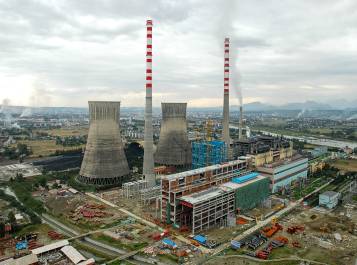 在我們?nèi)茧娙说暮顾?BR>冷卻塔、煙囪、主廠房拔地而起