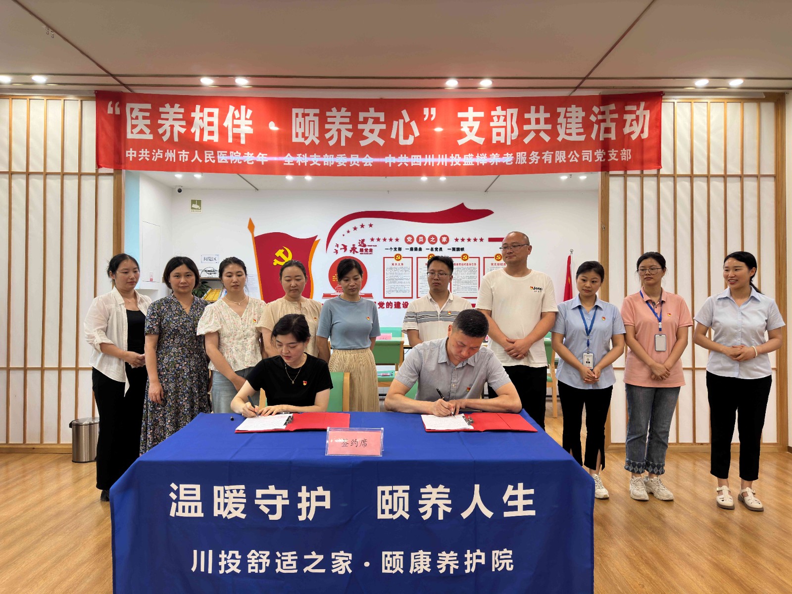 6月25日,川投盛櫸公司黨支部與瀘州市人民醫(yī)院老年·全科黨支部在川投舒適之家·頤康養(yǎng)護(hù)院(瀘州)開(kāi)展了支部共建簽約儀式。