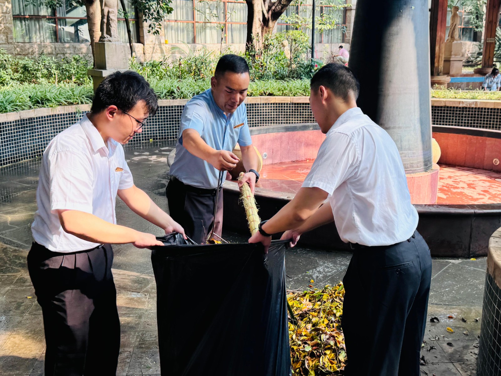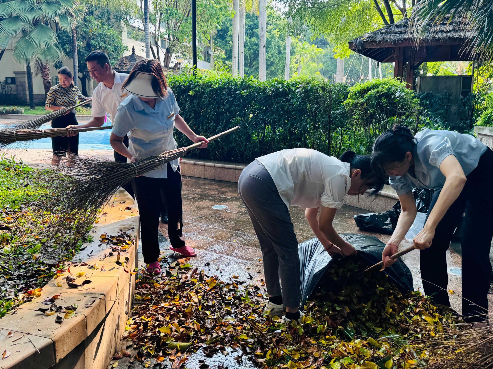面對狂風暴雨后的雜亂環(huán)境,為確保酒店正常經(jīng)營和賓客的舒適體驗,公司黨支部副書記、酒店負責人范英迅速組織酒店營銷部門及辦公室全體人員投入到一線經(jīng)營區(qū)域雨后恢復工作中,清理倒樹、疏通道路、消除隱患,及時將雜亂無章的經(jīng)營區(qū)域在當日正式營業(yè)前恢復如初。