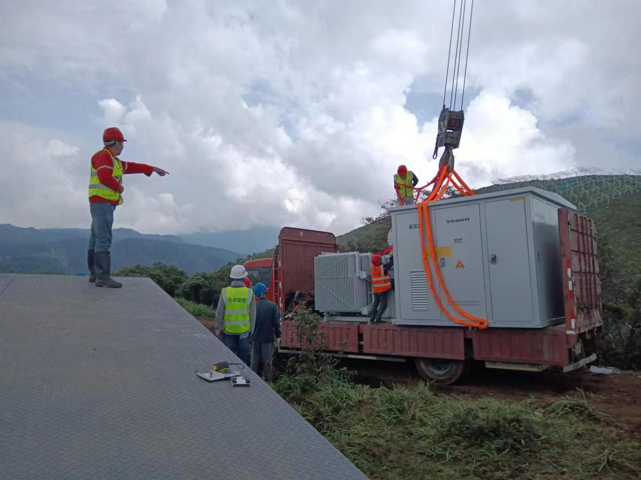 本次設備吊裝是德昌項目部組織的首次大型設備吊裝,為確保設備吊裝順利進行,項目部針對作業(yè)安全、道路運輸等問題,提前開展安全培訓及路況分析,確保吊裝任務順利完成。此次吊裝為后續(xù)15臺箱式變壓器吊裝提供了技術參考和工作經驗,為電氣設備安裝調試及并網工作提供技術保障。