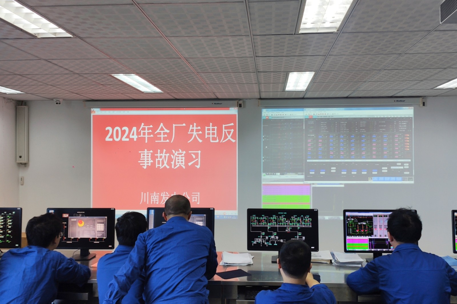 為提高應(yīng)急管理水平,增強(qiáng)突發(fā)事件應(yīng)對(duì)能力,結(jié)合瀘州氣電220kV送出線路跨越施工期間,公司將面臨1號(hào)機(jī)組僅通過方瀘三線與電網(wǎng)連接的單機(jī)單線極端運(yùn)行工況,近日,川南發(fā)電公司在檢修綜合樓仿真機(jī)培訓(xùn)室組織開展全廠失電應(yīng)急演練。