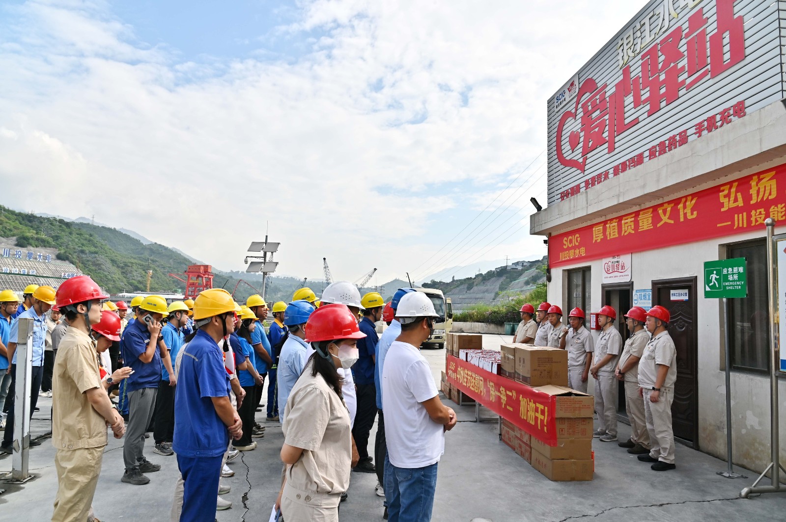 9月17日,正值萬家團圓的中秋佳節(jié),而川投能源下屬銀江水電站工地依舊機器轟鳴,一派熱火朝天的繁忙景象。川投能源副總經(jīng)理、攀水電公司黨總支書記、董事長徐孝剛帶領(lǐng)攀水電公司領(lǐng)導班子全體成員來到愛心驛站,為1200余名建設者送上香甜的月餅和清香的涼茶,向他們表達深切慰問與崇高敬意。