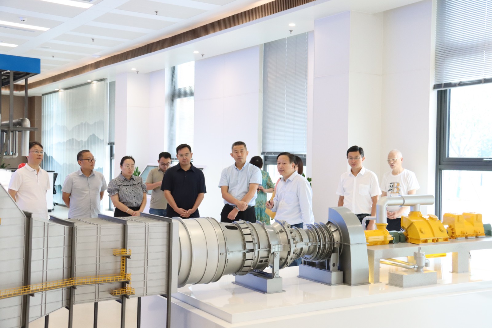 在一樓展示廳,調(diào)研組通過觀看視頻、聽取講解的形式了解資陽燃氣電站項目基本概況、投資規(guī)模、建設歷程、投產(chǎn)效益以及燃氣發(fā)電機組特性、優(yōu)勢等方面情況;在智慧管控中心,調(diào)研組通過實地考察、現(xiàn)場交流的方式了解了資陽燃氣電站1號機組和2號機組運行情況。