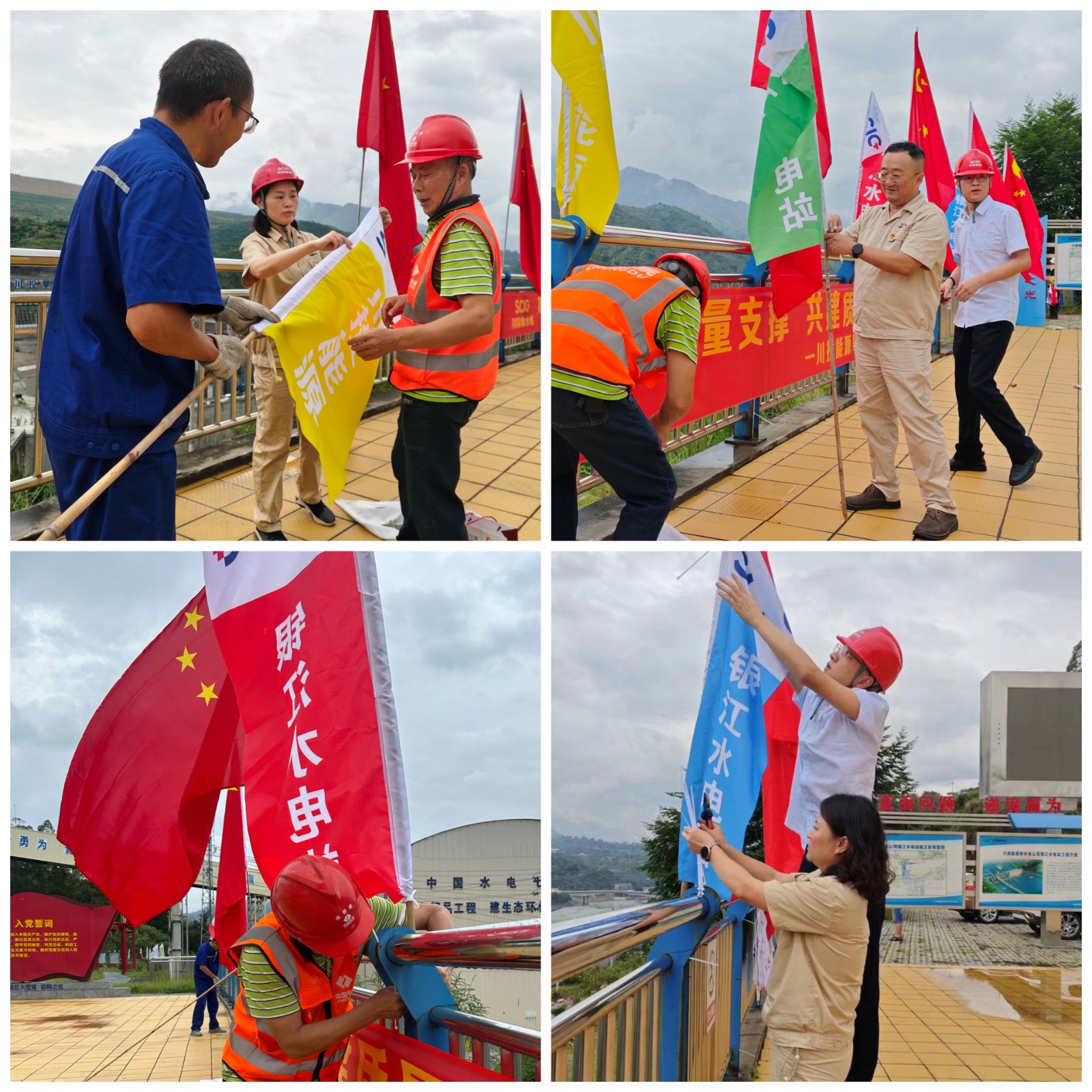 在大家的共同努力, 一面面嶄新鮮艷的五星紅旗,一幅幅絢麗的彩旗掛在黨建宣傳陣地和施工區(qū)域,紅旗彩旗與綠水青山交相輝映,隨著江風(fēng)襲來迎風(fēng)招展,構(gòu)成了金沙江畔的美麗畫卷。每名黨員都用勞動之美迎接國慶節(jié)的到來,用務(wù)實的工作作風(fēng)確保實現(xiàn)銀江水電站年底發(fā)電目標,用實際行動向祖國母親75歲華誕獻禮