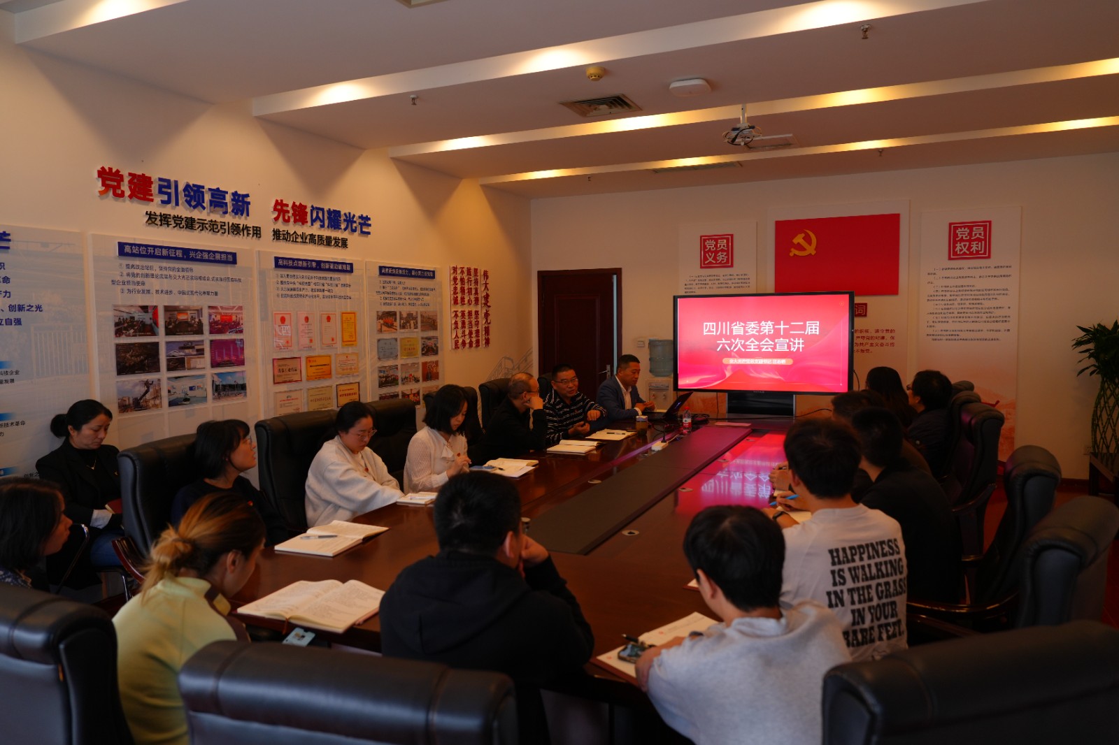 緊接著,黨總支副書記汪志橋宣講黨的二十屆三中全會精神和四川省委十二屆六次全會精神,重點解讀了黨的二十屆三中全會關于進一步全面深化改革的總體要求和重要舉措,宣講了《中共四川省委關于深入學習貫徹黨的二十屆三中全會精神,進一步全面深化改革、奮力譜寫中國式現代化四川新篇章的決定》。他強調,我們學習貫徹黨的二十屆三中全會精神和四川省委十二屆六次全會精神,一定要結合交大光芒具體實際,不斷深化改革,強化創(chuàng)新驅動發(fā)展戰(zhàn)略,按照全會部署要求,全力以赴拼經濟、千方百計穩(wěn)增長,圍繞研發(fā)投入、技術攻關、成果轉化等工作重點,加快培育發(fā)展新質生產力。每一位黨員同志要充分發(fā)揮模范帶頭作用,切實把會議精神轉化為干事創(chuàng)業(yè)的強大動力,為公司高質量發(fā)展接續(xù)奮斗。