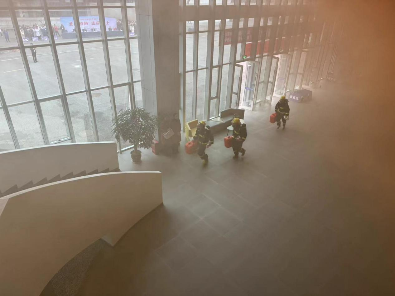 此次演練模擬園區(qū)檢驗(yàn)檢測中心大樓電器短路失火,造成樓內(nèi)大面積起火,物業(yè)中心快速響應(yīng),啟動(dòng)消防應(yīng)急預(yù)案,撥打119報(bào)警電話,組織人員有序撤離,進(jìn)行初期火災(zāi)搶險(xiǎn),直至消防大隊(duì)趕至現(xiàn)場,采用高壓水槍作業(yè)并展開高空救援,最終撲滅火災(zāi),并成功救出被困人員。各單位配合默契,演練達(dá)到預(yù)期效果。