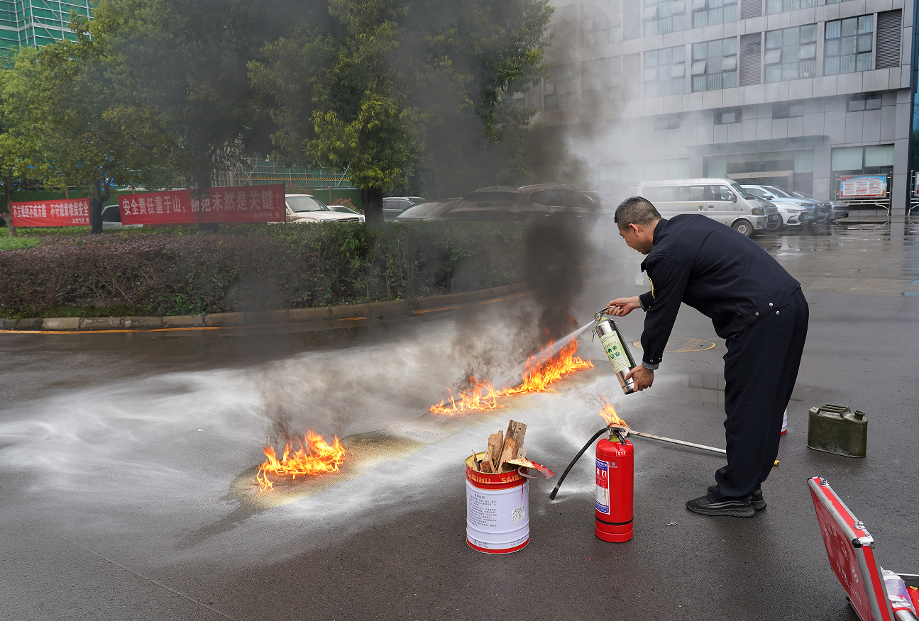 此次培訓還開展了以會議室火災場景為背景的應急逃生與疏散演練,并在辦公樓前進行了滅火實際操作演練,指導員工怎樣正確、迅速地運用滅火器撲滅初期火災。