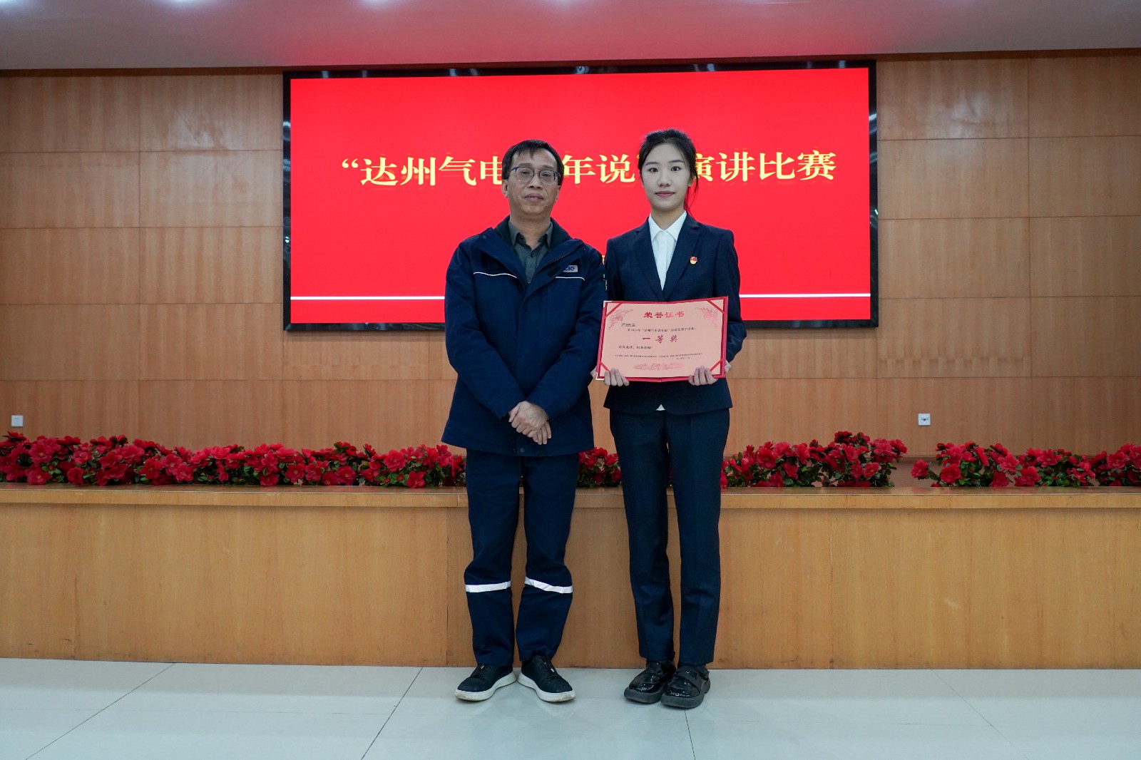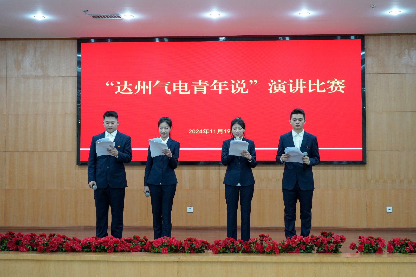 11月19日,達(dá)州氣電黨總支與團(tuán)總支聯(lián)合舉辦“達(dá)州氣電青年說”演講比賽。公司黨總支書記、總經(jīng)理蔡宏,副總經(jīng)理孫勇,黨總支委員、職工董事、工會(huì)主席李勇出席活動(dòng)。
