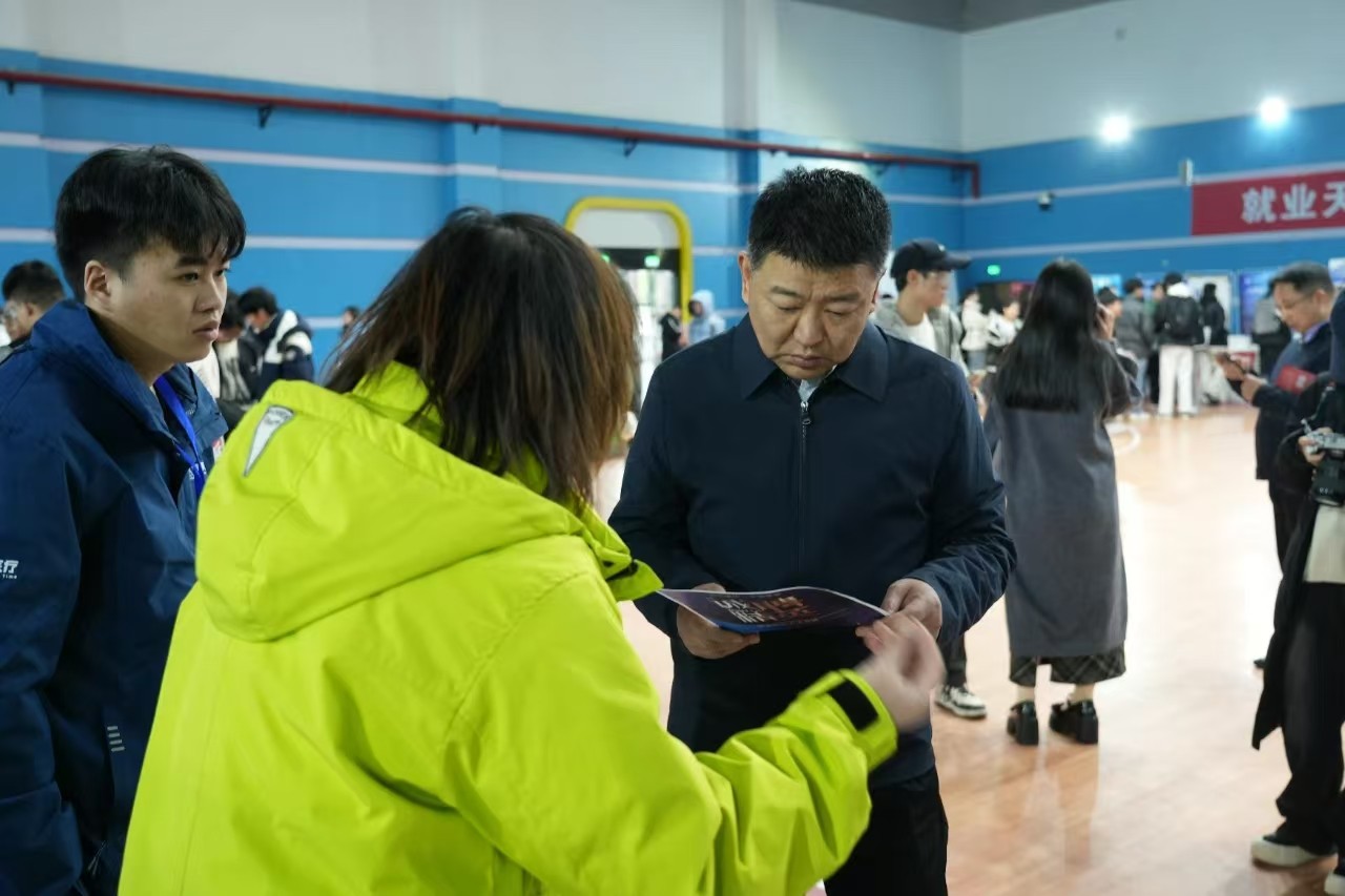 學(xué)院在家領(lǐng)導(dǎo)班子走訪用人單位,詳細了解企業(yè)用人需求、崗位供給等情況,并與學(xué)生深入交流,提供就業(yè)指導(dǎo)。學(xué)院領(lǐng)導(dǎo)鼓勵前來面試的同學(xué)們,要以雙選會為契機,充分認識到就業(yè)市場的多元化和競爭的激烈性,不僅要立足自身專業(yè)優(yōu)勢,勇敢展示自我,同時也要保持清醒的頭腦,對自身職業(yè)規(guī)劃有清晰的定位,在職業(yè)生涯的起點上邁好堅實的第一步。