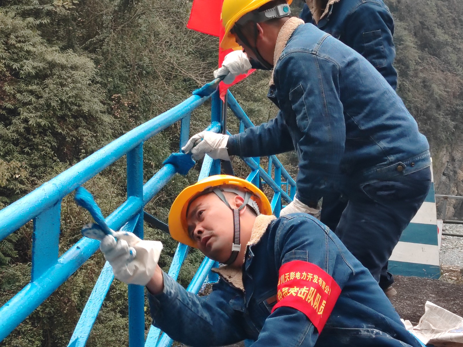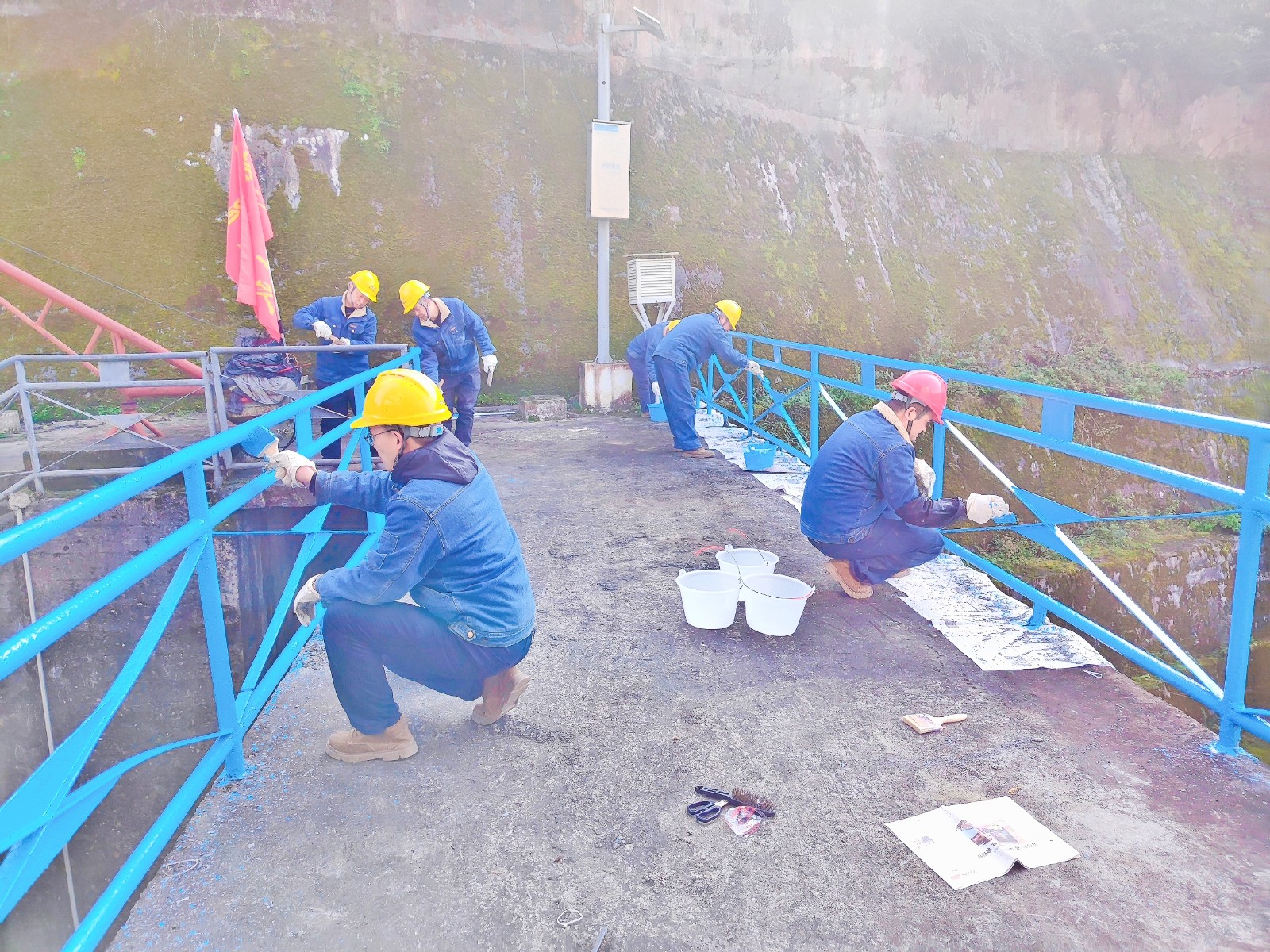 鳳鳴湖水庫(kù)是彭州市一級(jí)水源保護(hù)地。水庫(kù)大壩的護(hù)欄及金屬結(jié)構(gòu)長(zhǎng)期暴露于自然環(huán)境中,出現(xiàn)了不同程度的銹蝕脫漆現(xiàn)象,既影響大壩整體美觀,又對(duì)運(yùn)行安全埋下隱患。為給大壩換上“新衣”,第三支部黨員擼起袖子迅速行動(dòng)起來(lái)。