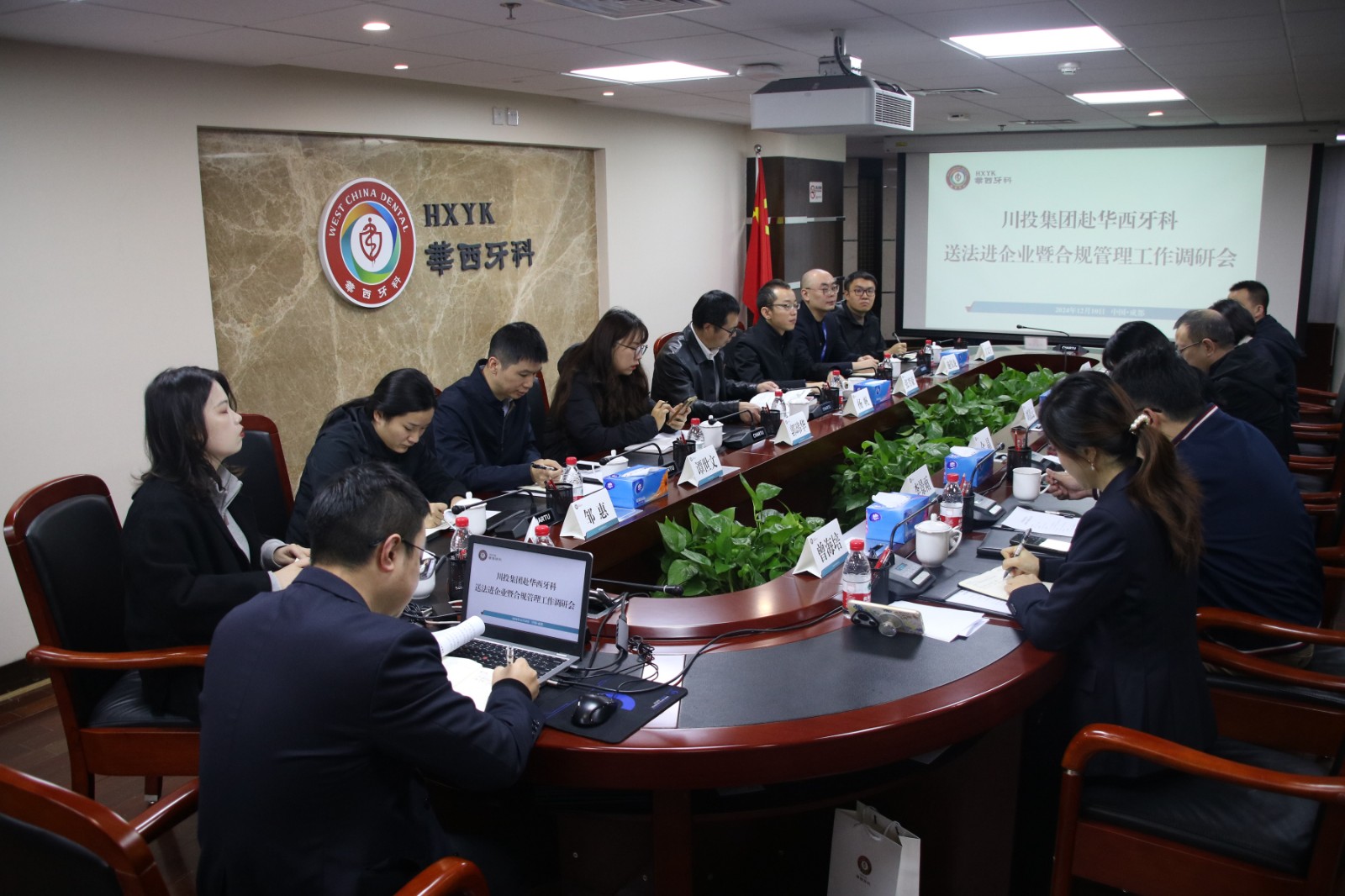川投集團法務風控部(合規(guī)管理部),華西牙科在家班子成員、各職能部門負責人參加會議。