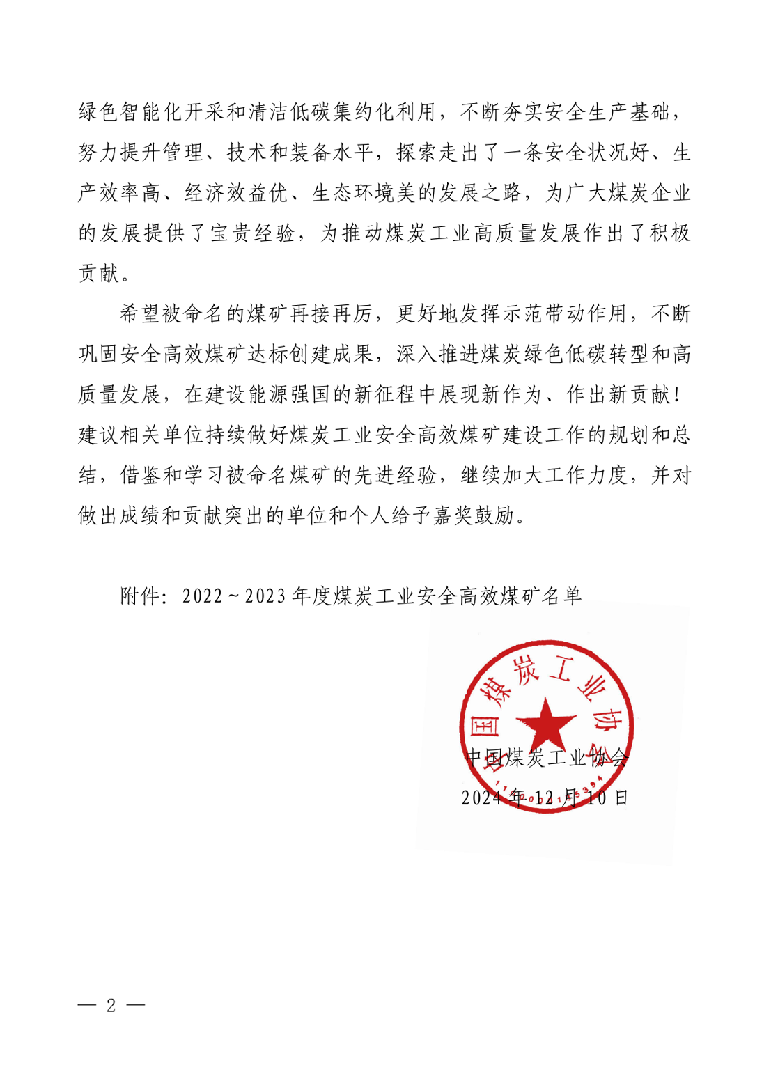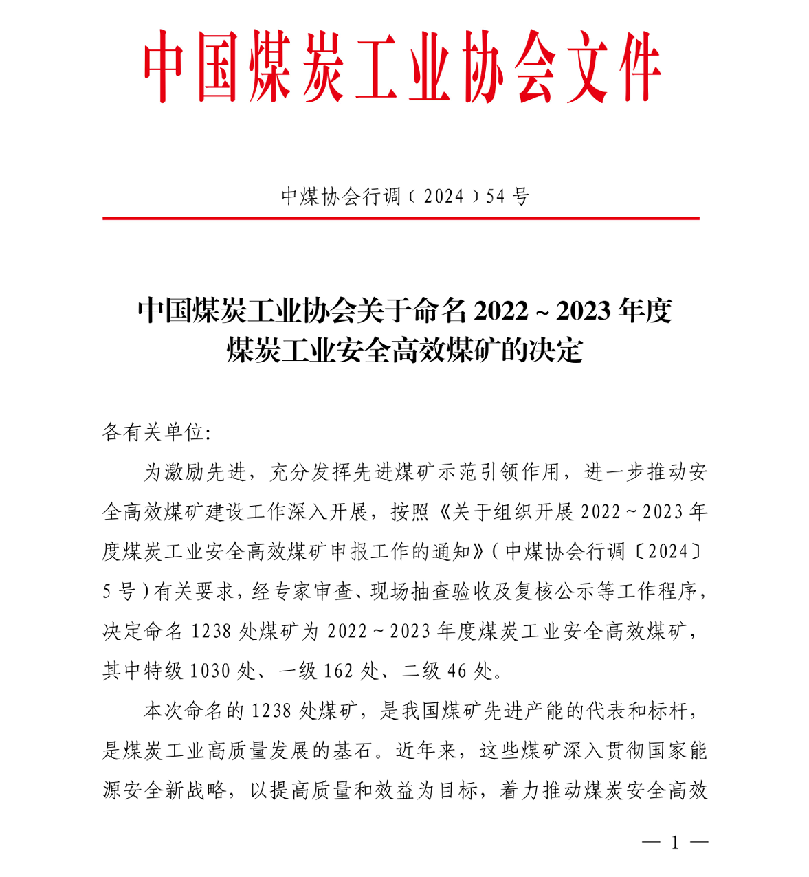 近日,中國煤炭工業(yè)協(xié)會(huì)印發(fā)關(guān)于命名2022年-2023年度煤炭工業(yè)安全高效煤礦的決定,嘉陽煤礦再次榮獲“全國煤炭工業(yè)一級(jí)安全高效礦井”稱號(hào),這是對(duì)煤礦安全生產(chǎn)標(biāo)準(zhǔn)化和智能化改造成果的又一高度肯定。